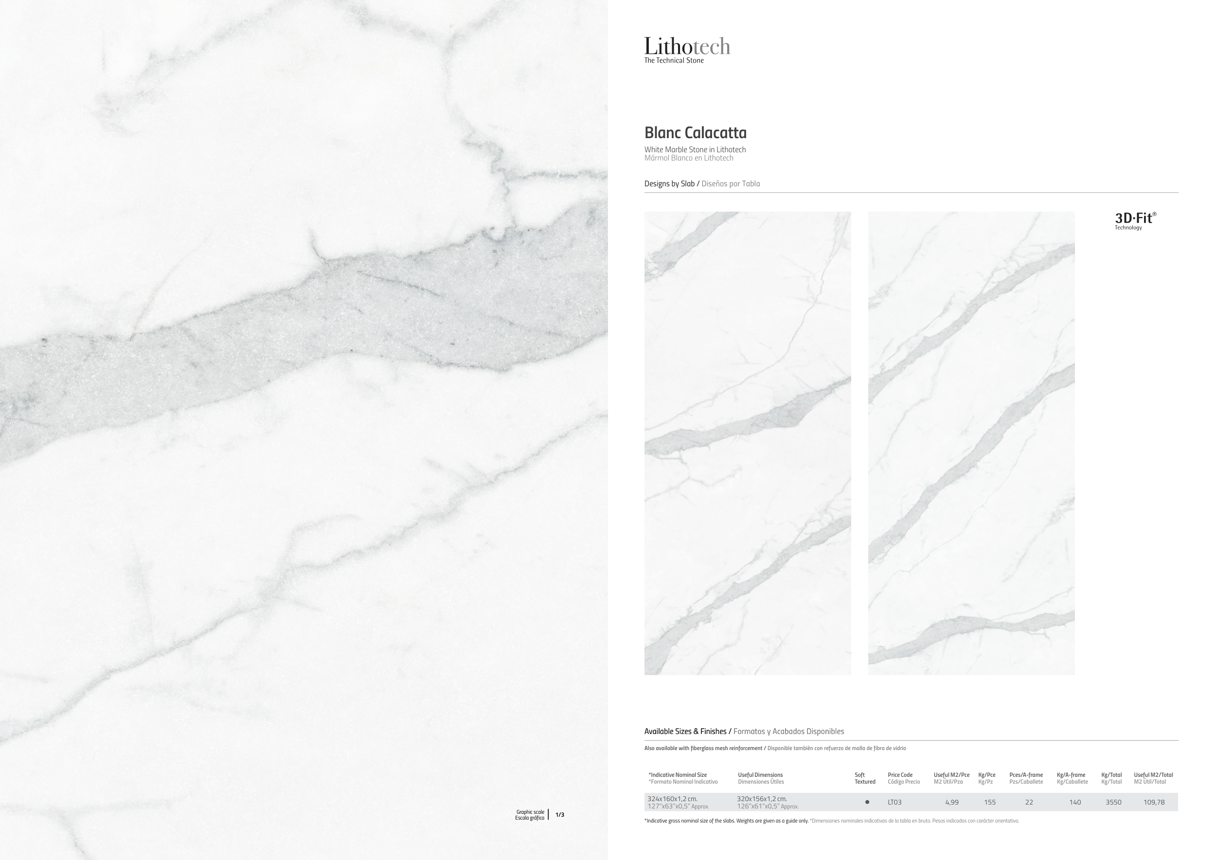 *Indicative gross nominal size of the slabs. Weights are given as a guide only. *Dimensiones nominales indicativas de la tabla en bruto. Pesos indicados con carácter orientativo.