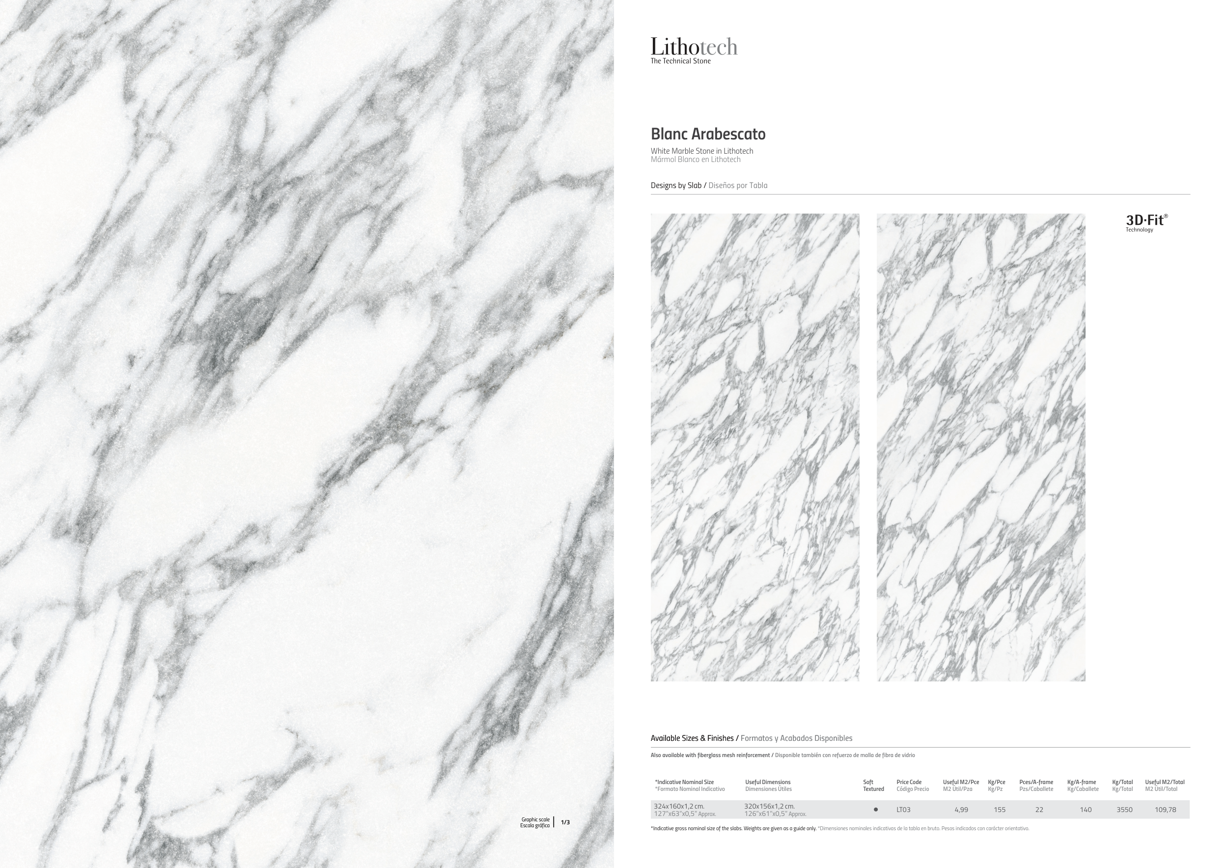 *Indicative gross nominal size of the slabs. Weights are given as a guide only. *Dimensiones nominales indicativas de la tabla en bruto. Pesos indicados con carácter orientativo.