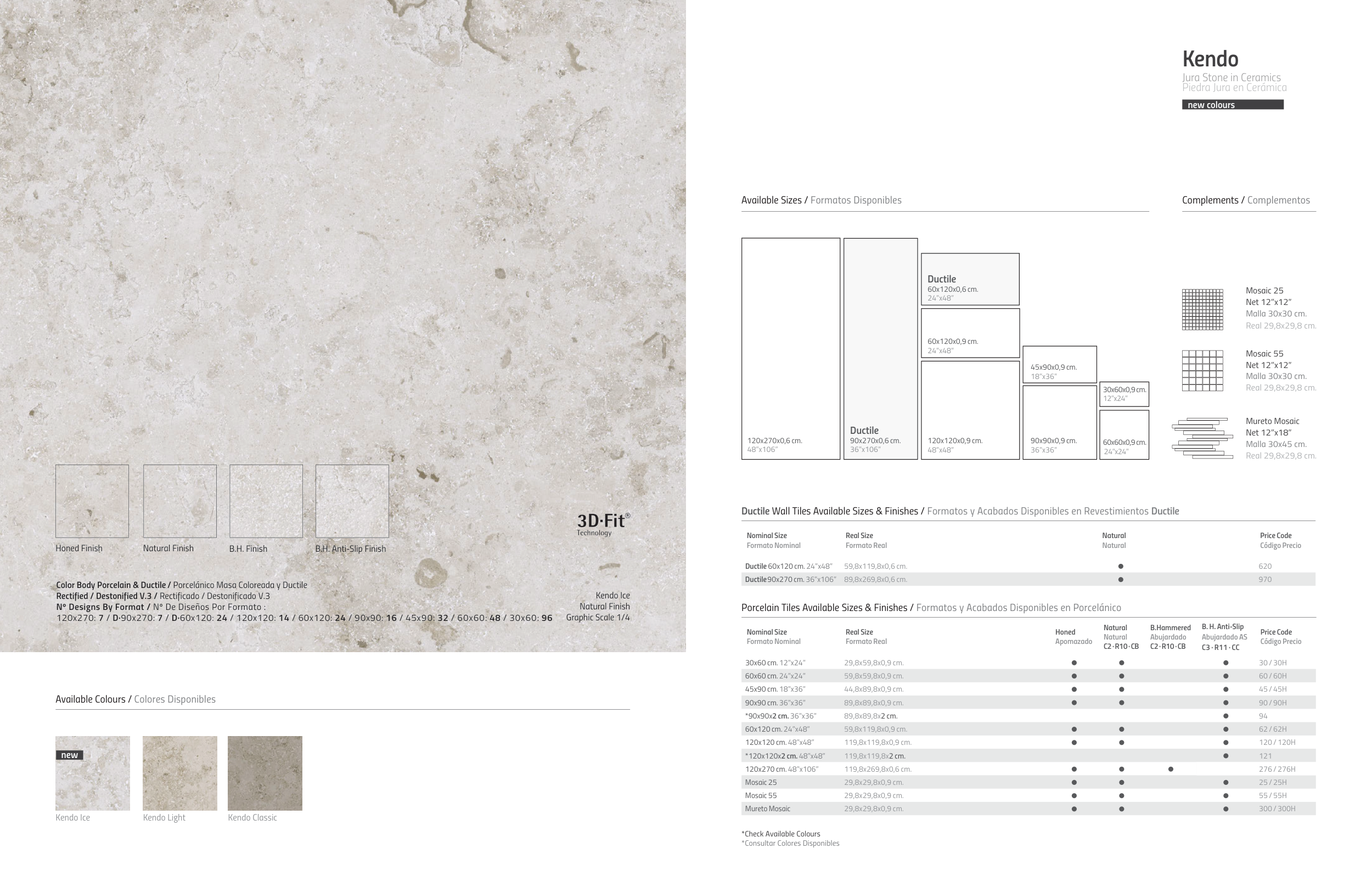 Porcelain Tiles Available Sizes & Finishes / Formatos y Acabados Disponibles en Porcelánico
