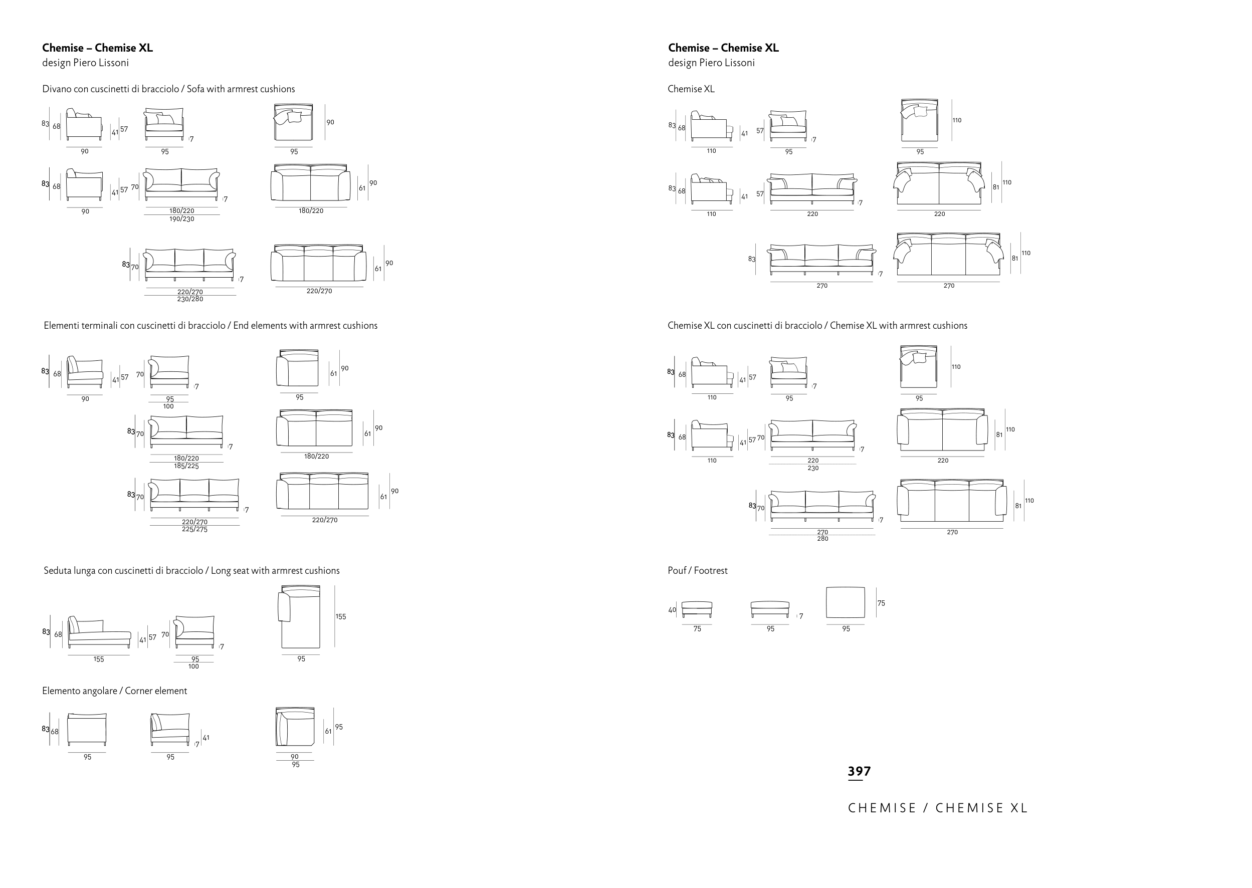 Modello "CHEMISE" elementi s.brac./ element without armrest