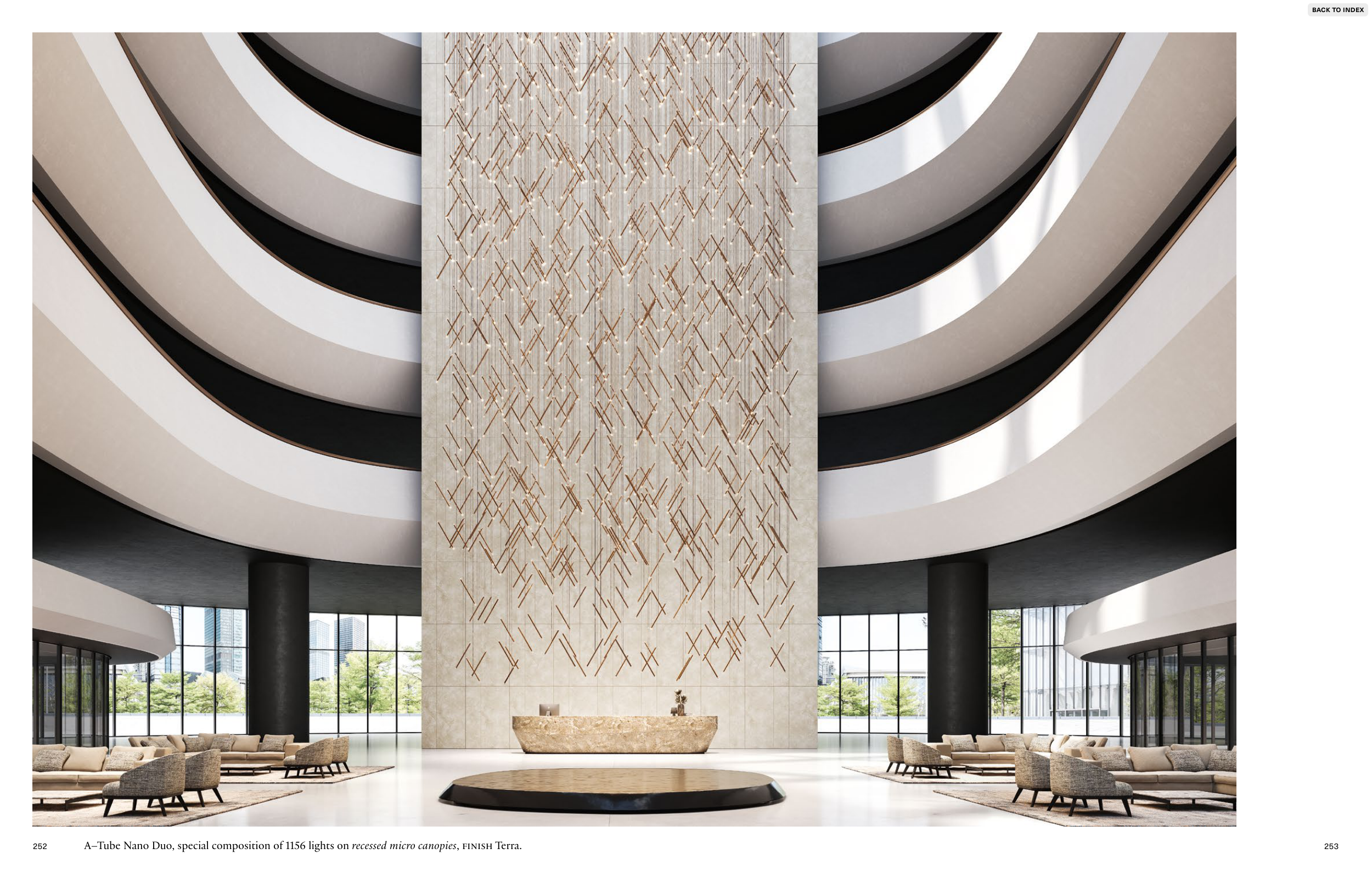 A–Tube Nano Duo, special composition of 1156 lights on recessed micro canopies, FINISH Terra.