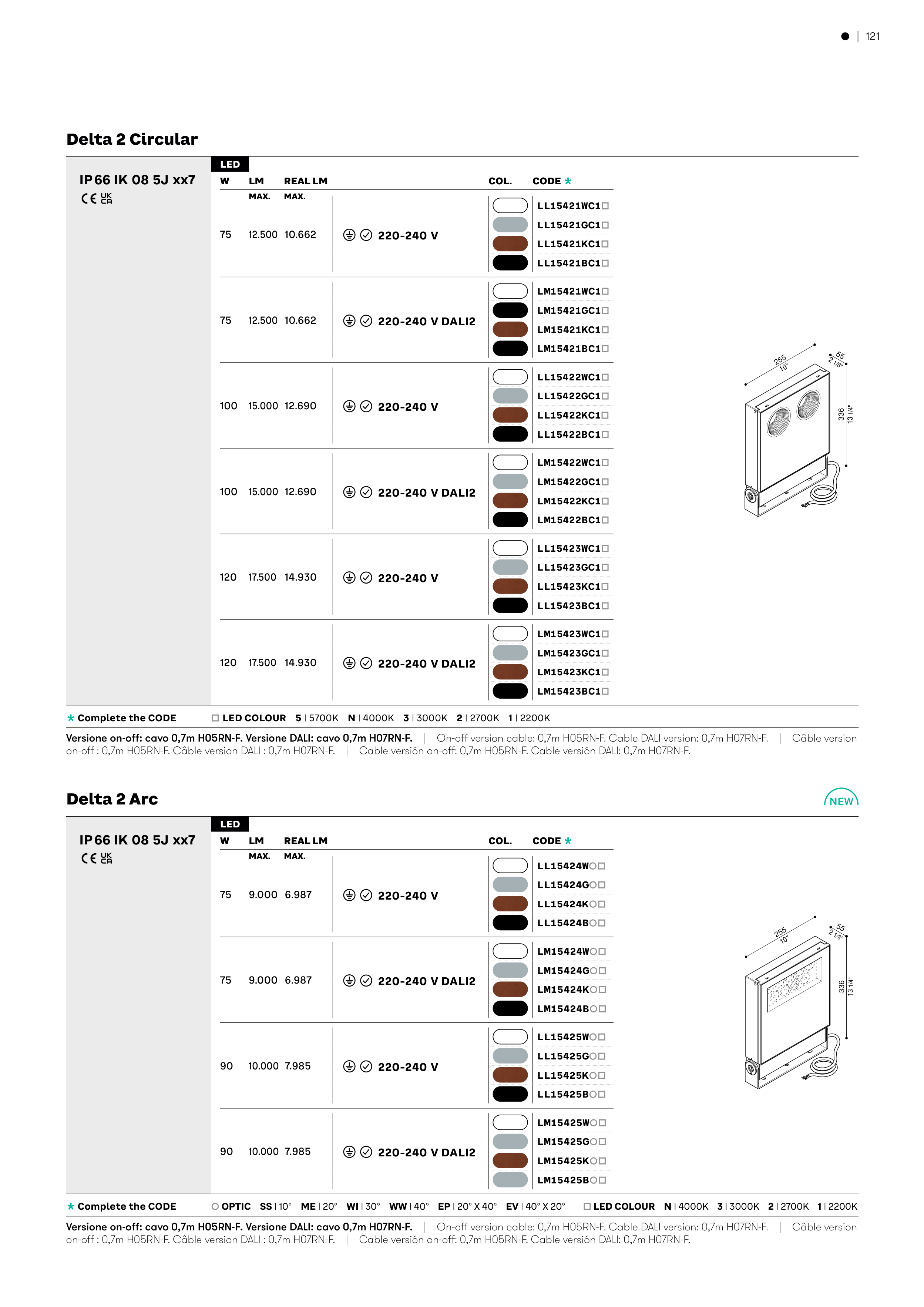 È OPTIC SS | 10° ME | 20° WI | 30° WW | 40° EP | 20° X 40° EV | 40° X 20° Ä LED COLOUR N | 4000K 3 | 3000K 2 | 2700K 1 | 2200K