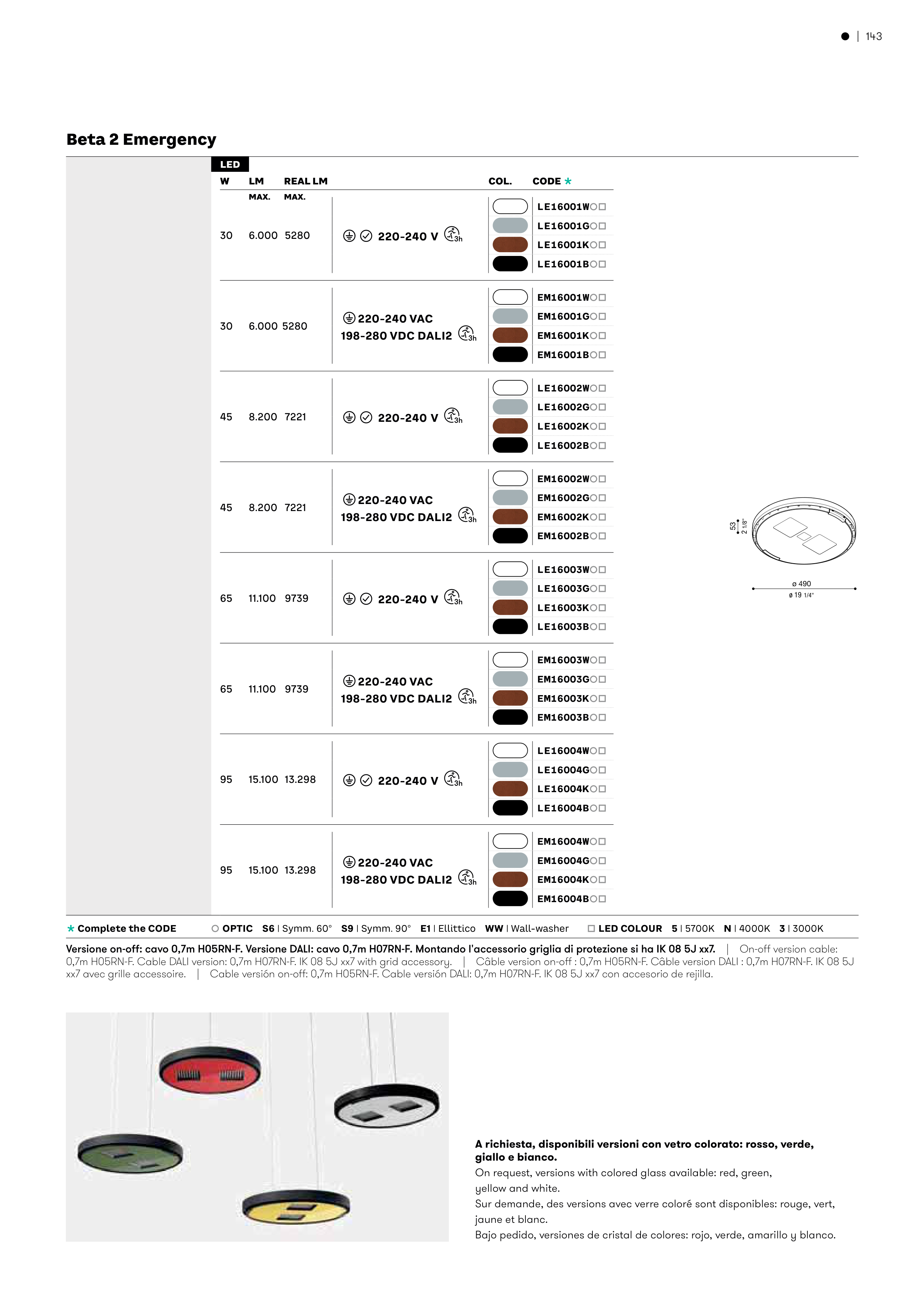 È OPTIC S6 | Symm. 60° S9 | Symm. 90° E1 | Ellittico WW | Wall-washer Ä LED COLOUR 5 | 5700K N | 4000K 3 | 3000K