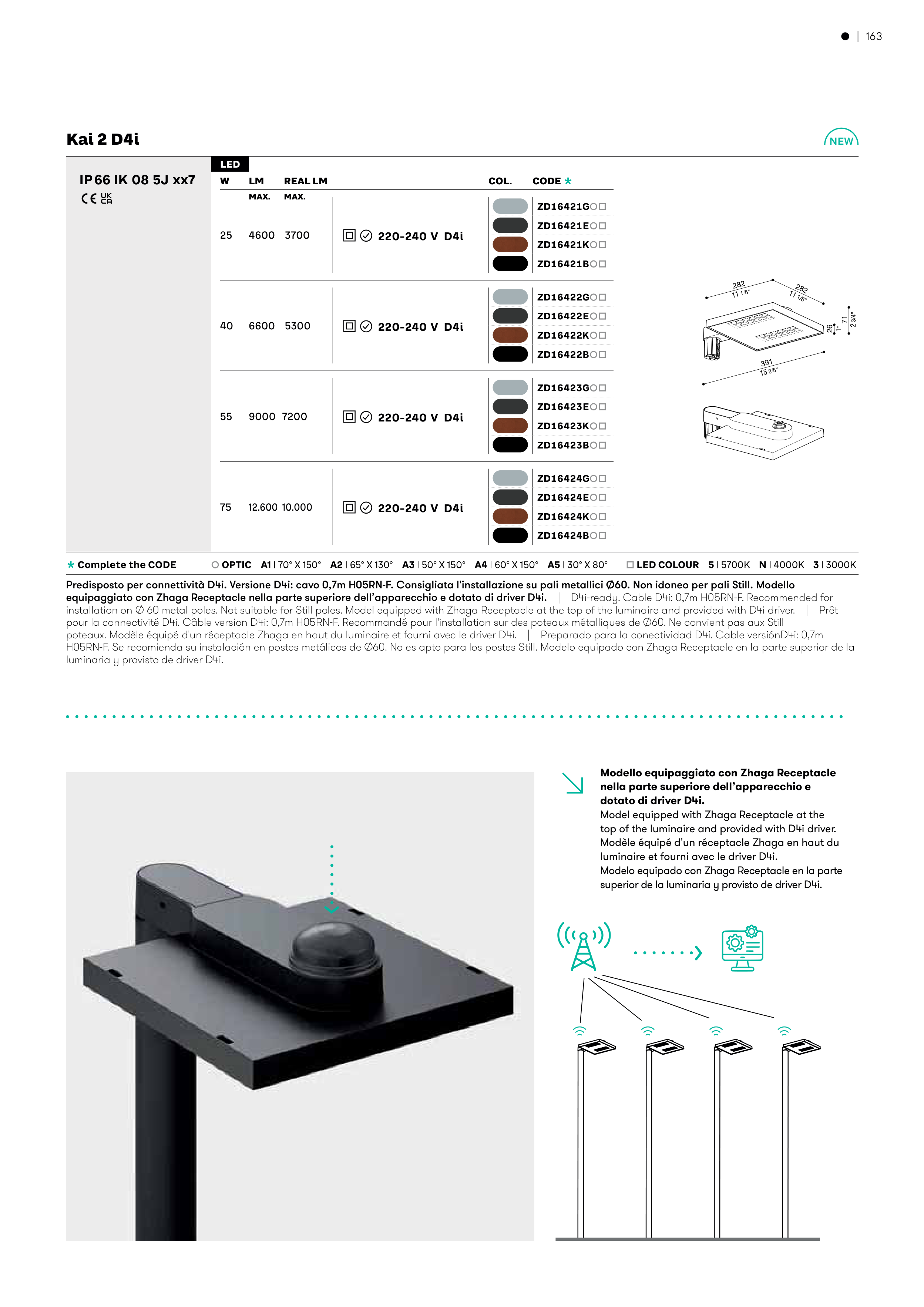 equipaggiato con Zhaga Receptacle nella parte superiore dell’apparecchio e dotato di driver D4i.� �� ����������������������������������������������������