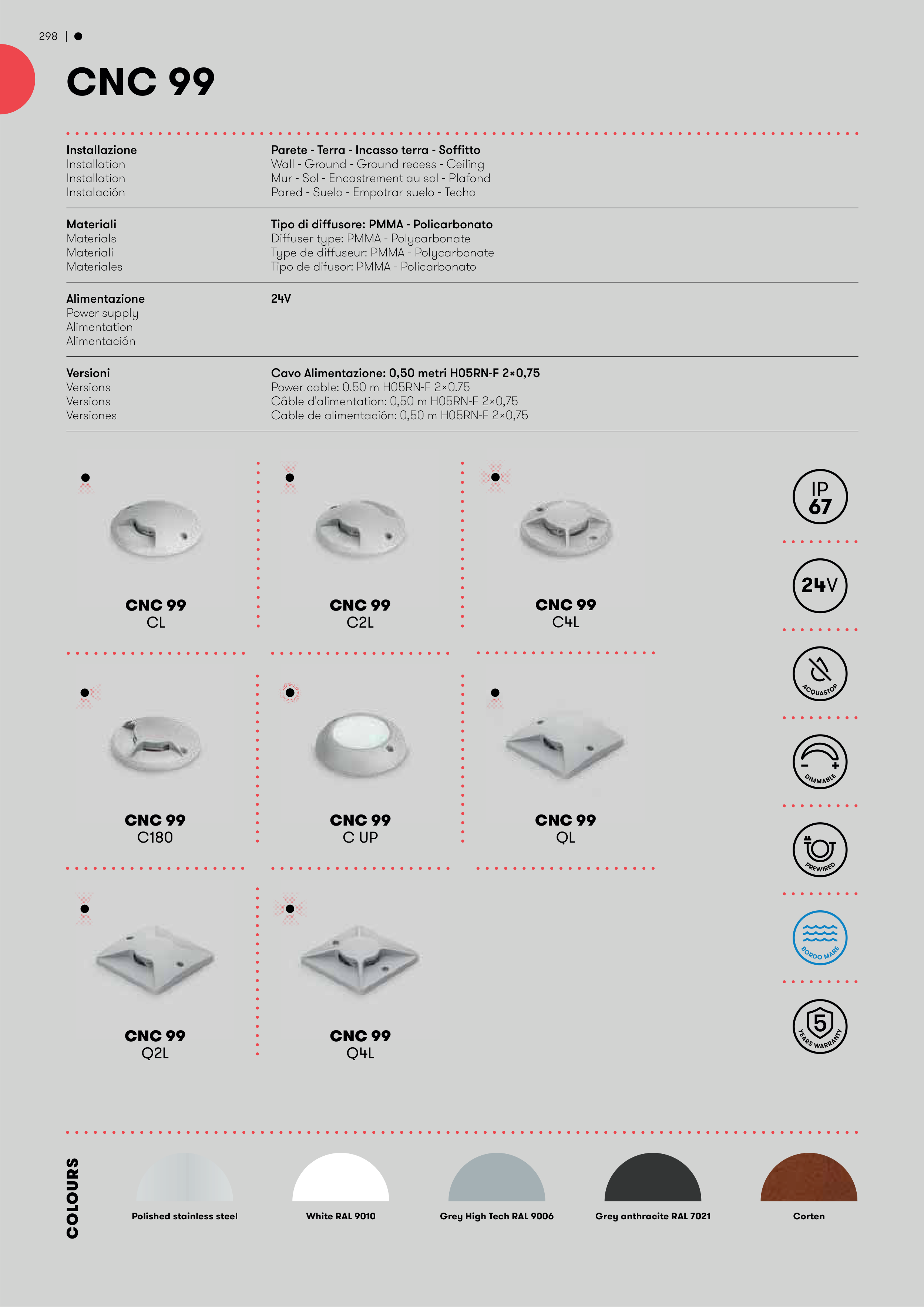Tipo di diffusore: PMMA - Policarbonato