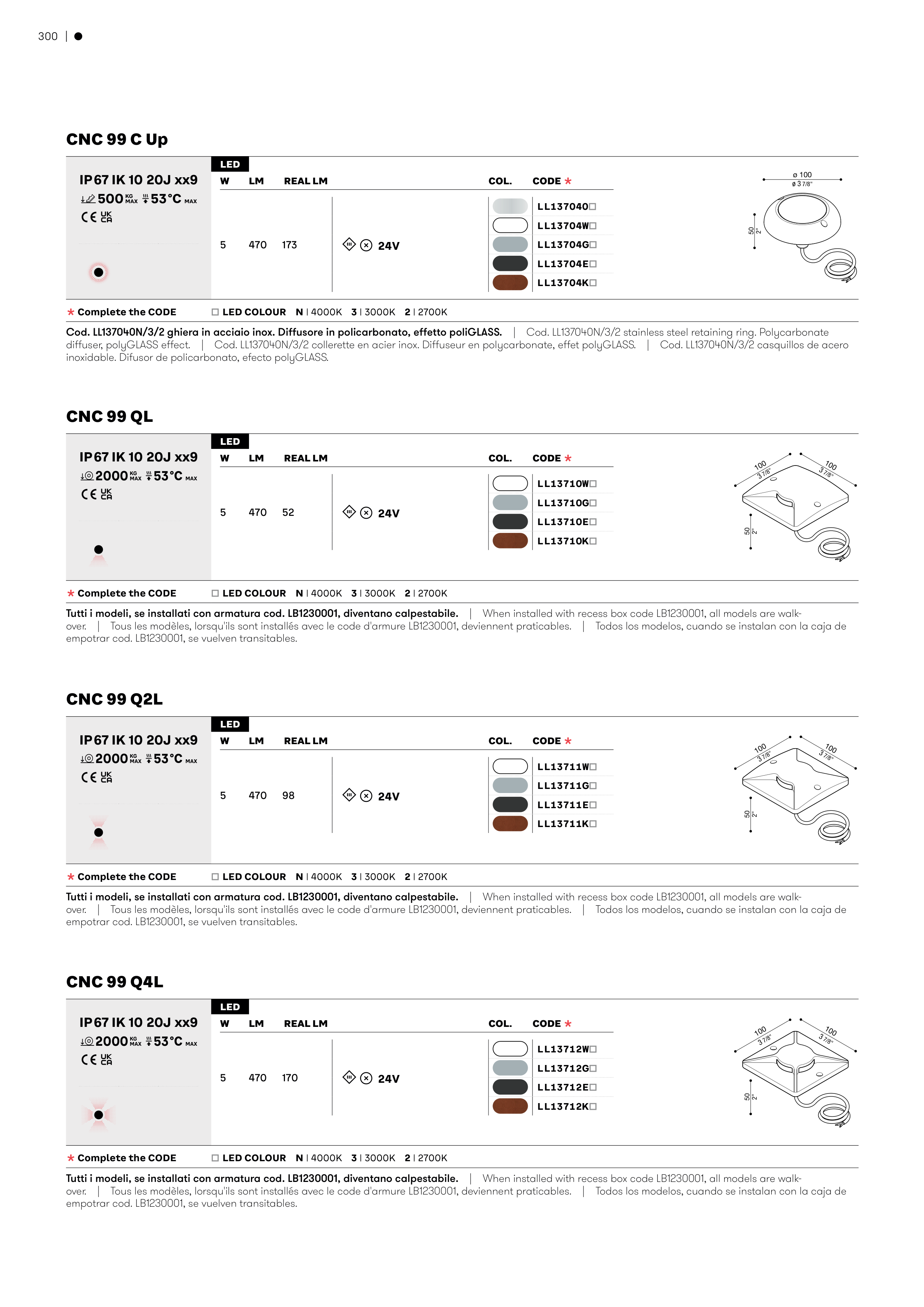 Tutti i modeli, se installati con armatura cod. LB1230001, diventano calpestabile.� �� �������������������������������������������������������������������