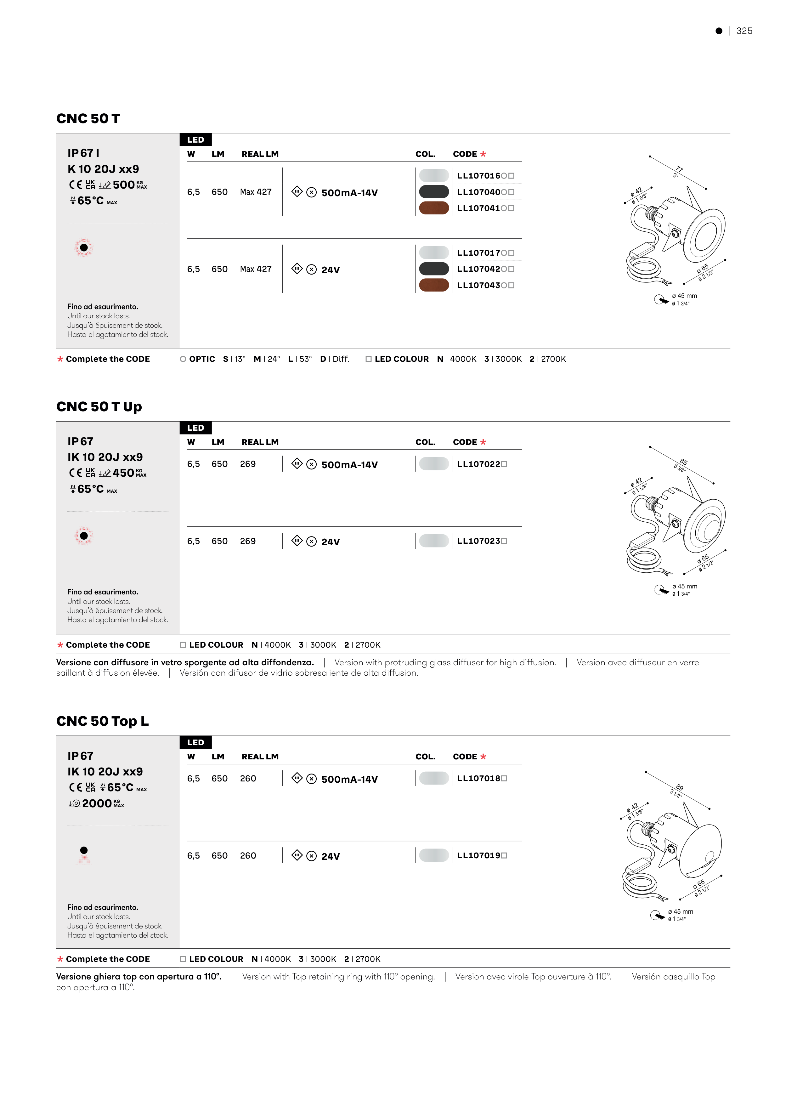 È OPTIC S | 13° M | 24° L | 53° D | Diff. Ä LED COLOUR N | 4000K 3 | 3000K 2 | 2700K