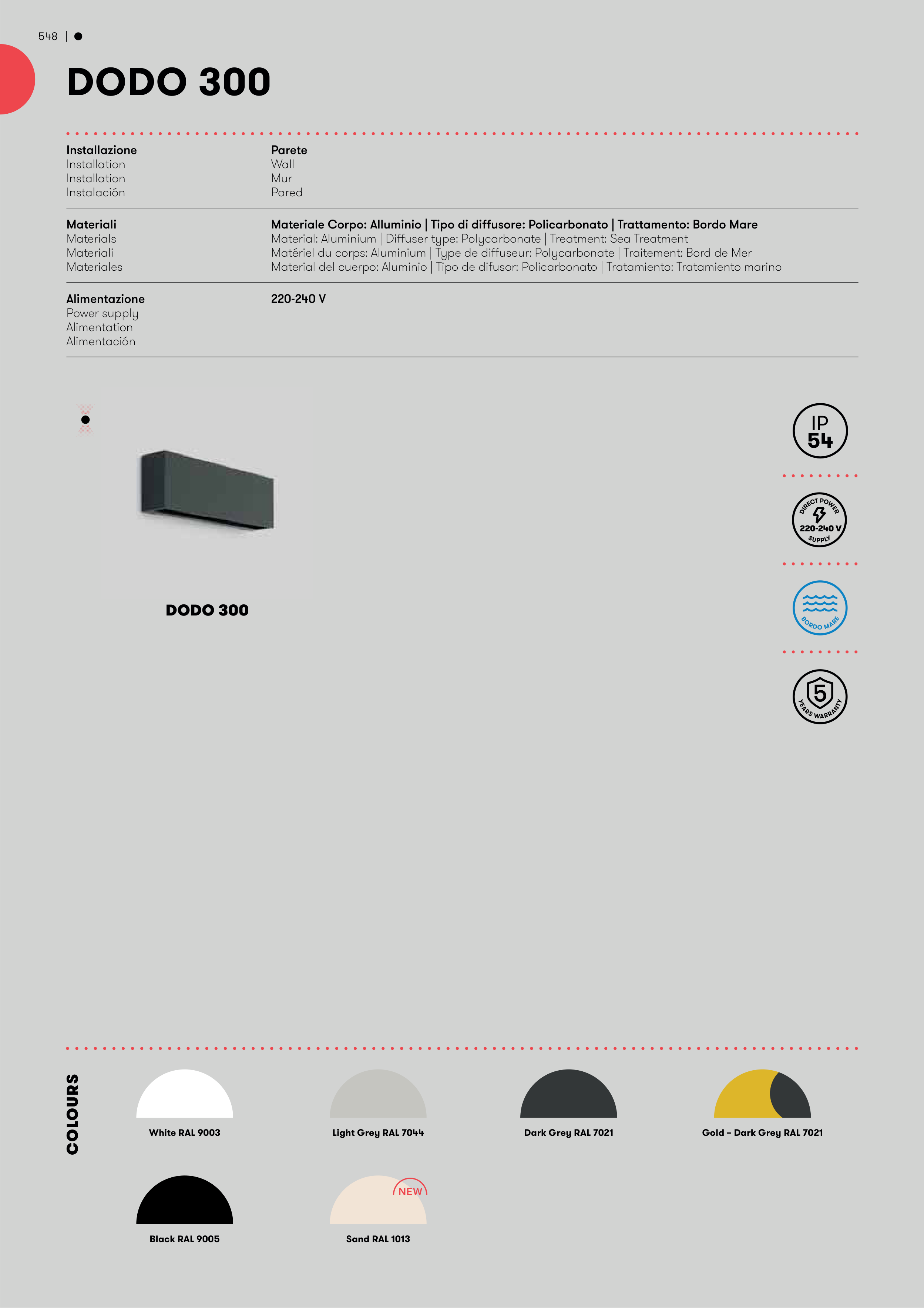 Materiale Corpo: Alluminio | Tipo di diffusore: Policarbonato | Trattamento: Bordo Mare