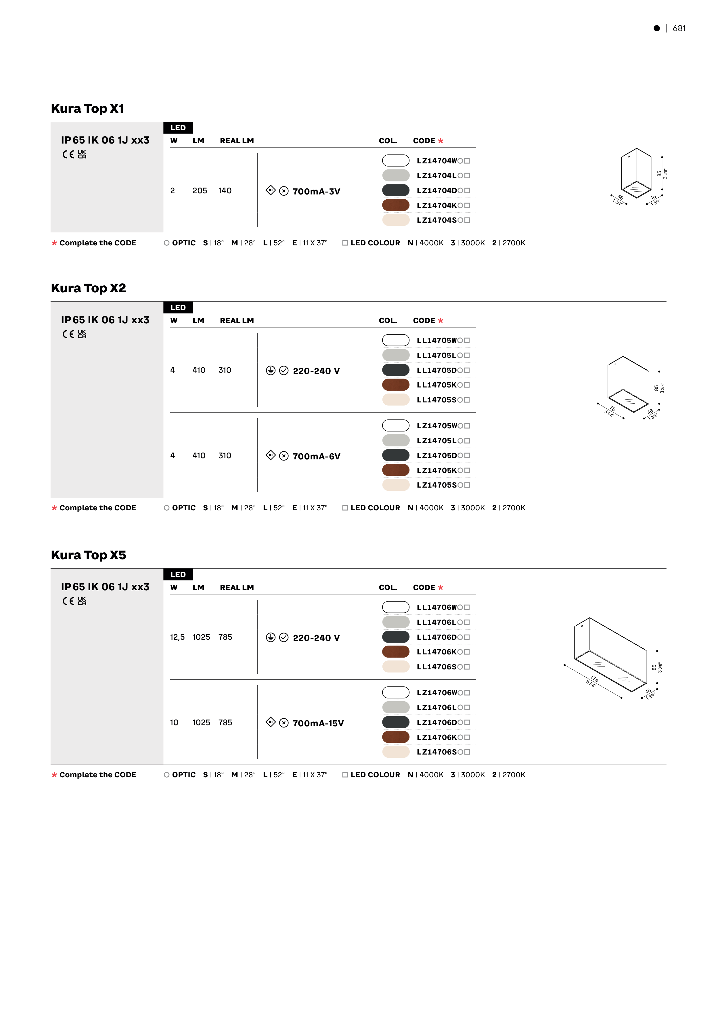 È OPTIC S | 18° M | 28° L | 52° E | 11 X 37° Ä LED COLOUR N | 4000K 3 | 3000K 2 | 2700K