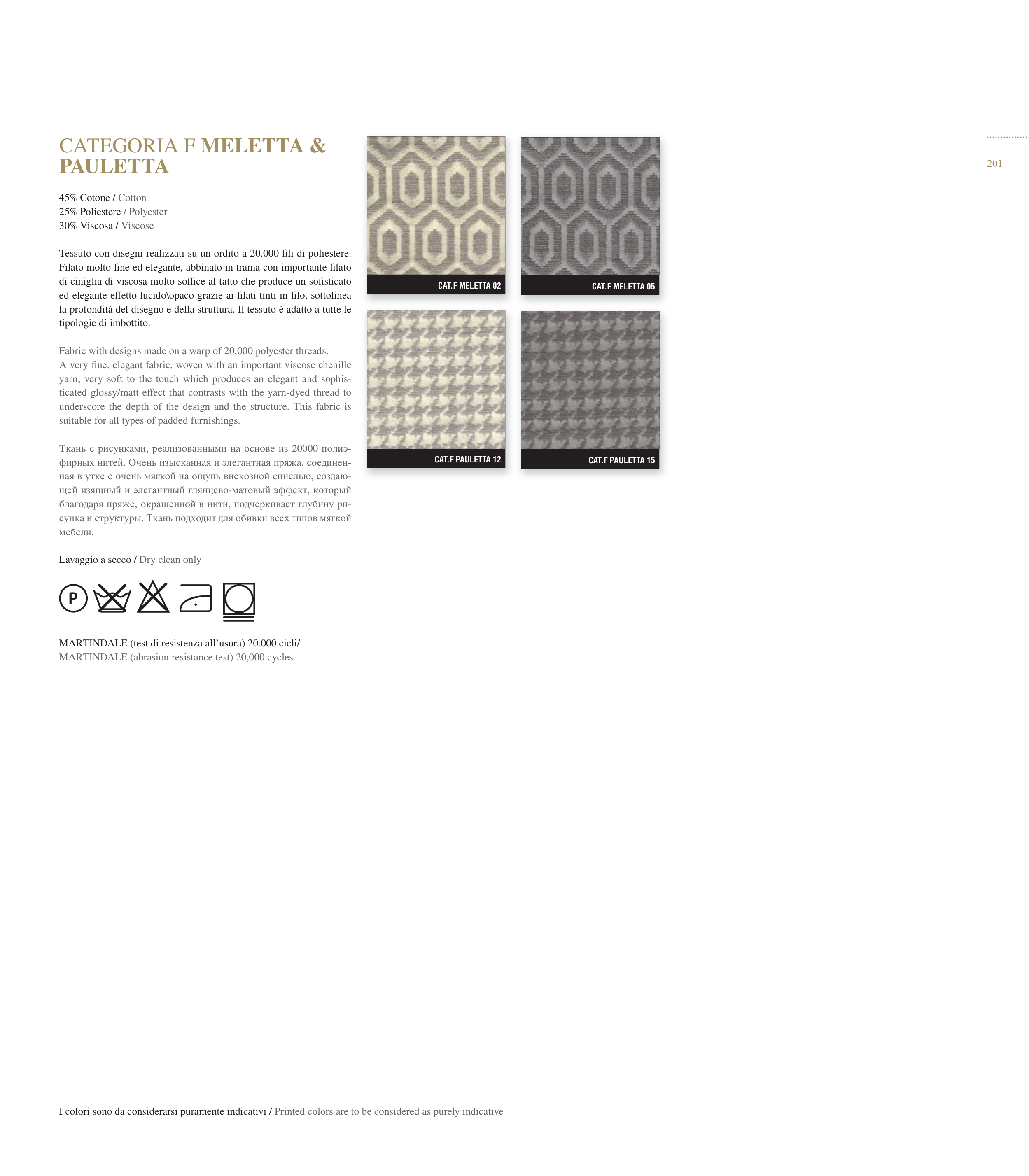 I colori sono da considerarsi puramente indicativi / Printed colors are to be considered as purely indicative