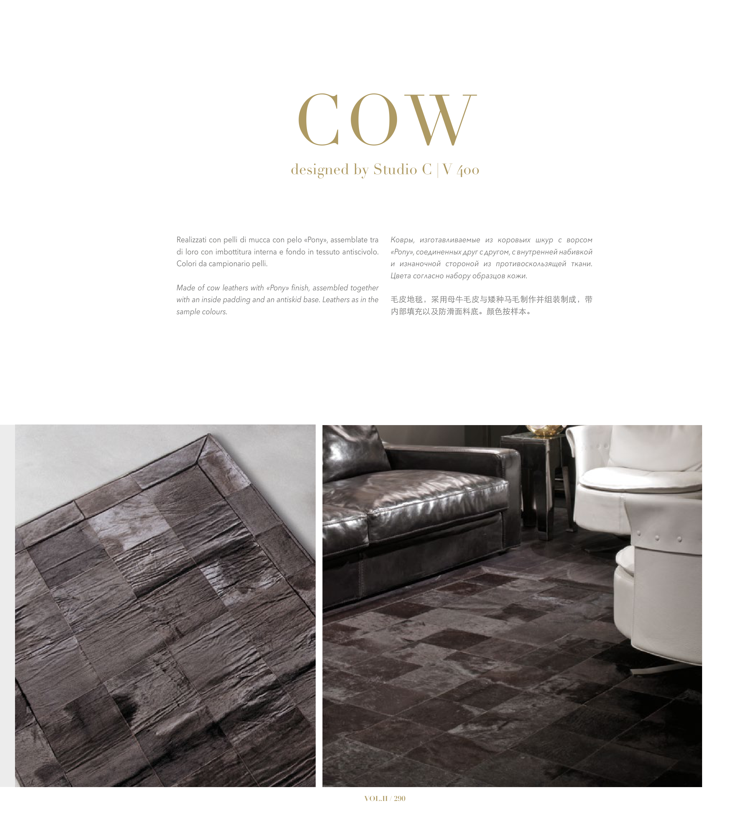 毛皮地毯,采用母牛毛皮与矮种马毛制作并组装制成,带