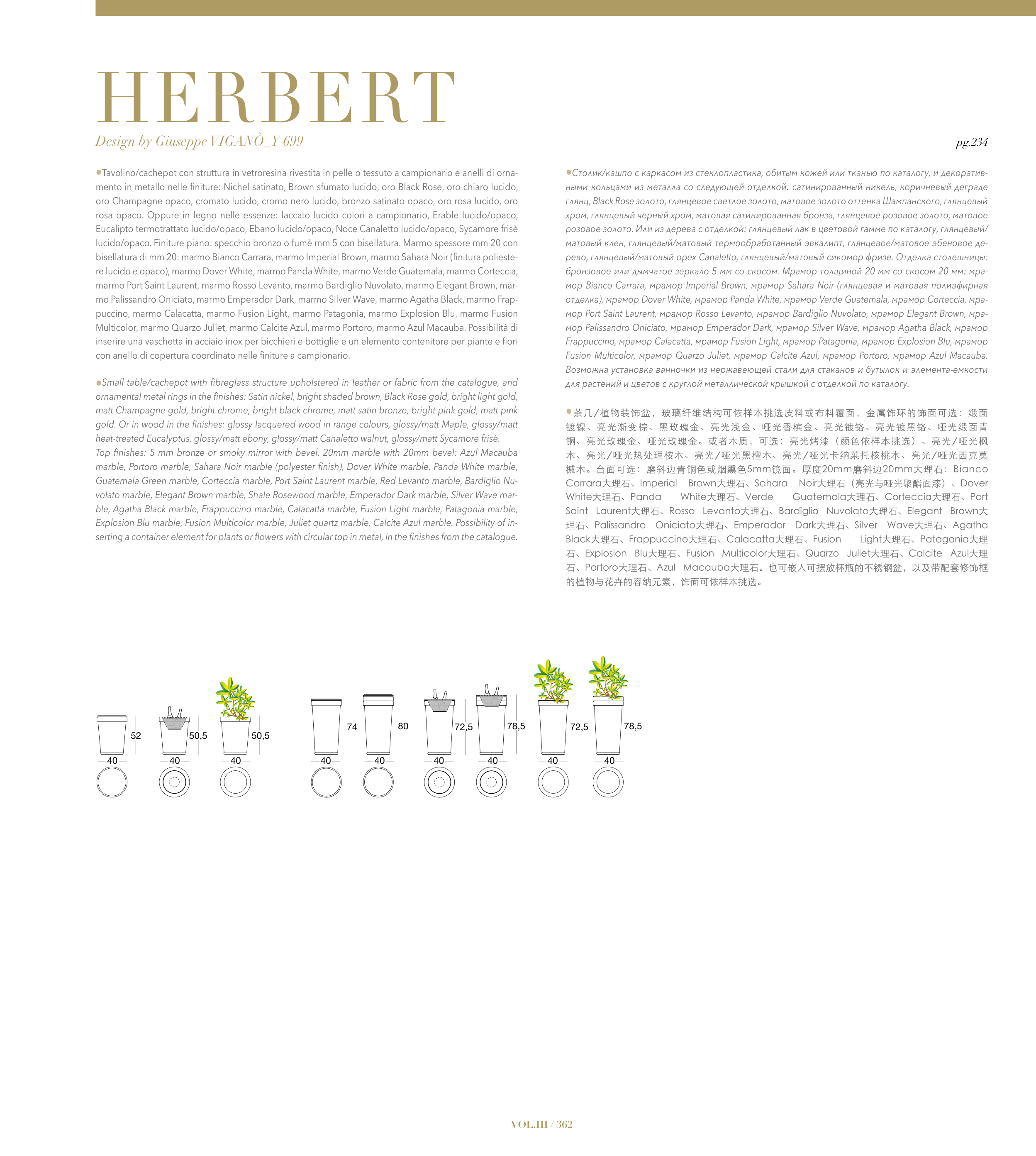 •Столик/кашпо с каркасом из стеклопластика, обитым кожей или тканью по каталогу, и декоратив-