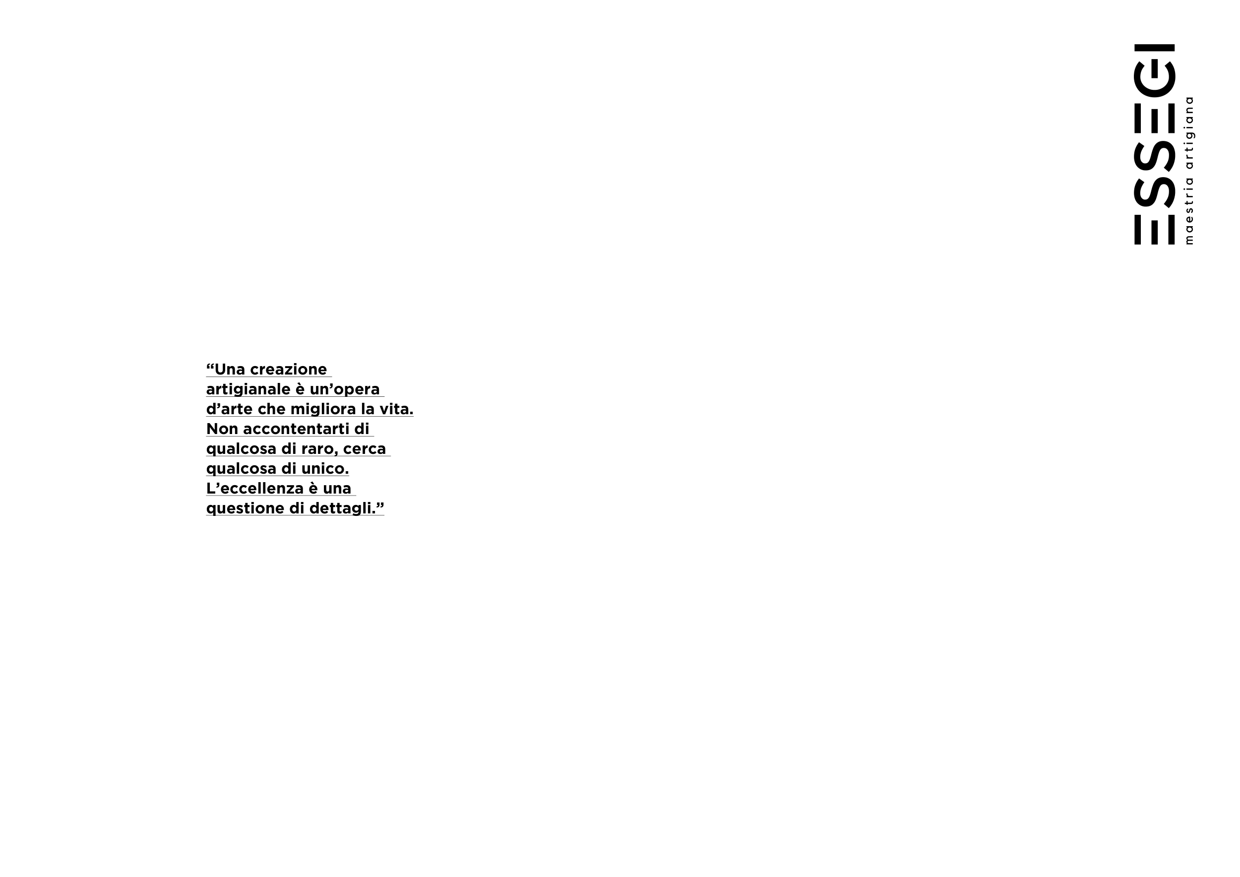 “Una creazione artigianale è un’opera d’arte che migliora la vita. Non accontentarti di qualcosa di raro, cerca qualcosa di unico. L’eccellenza è una questione di dettagli.”