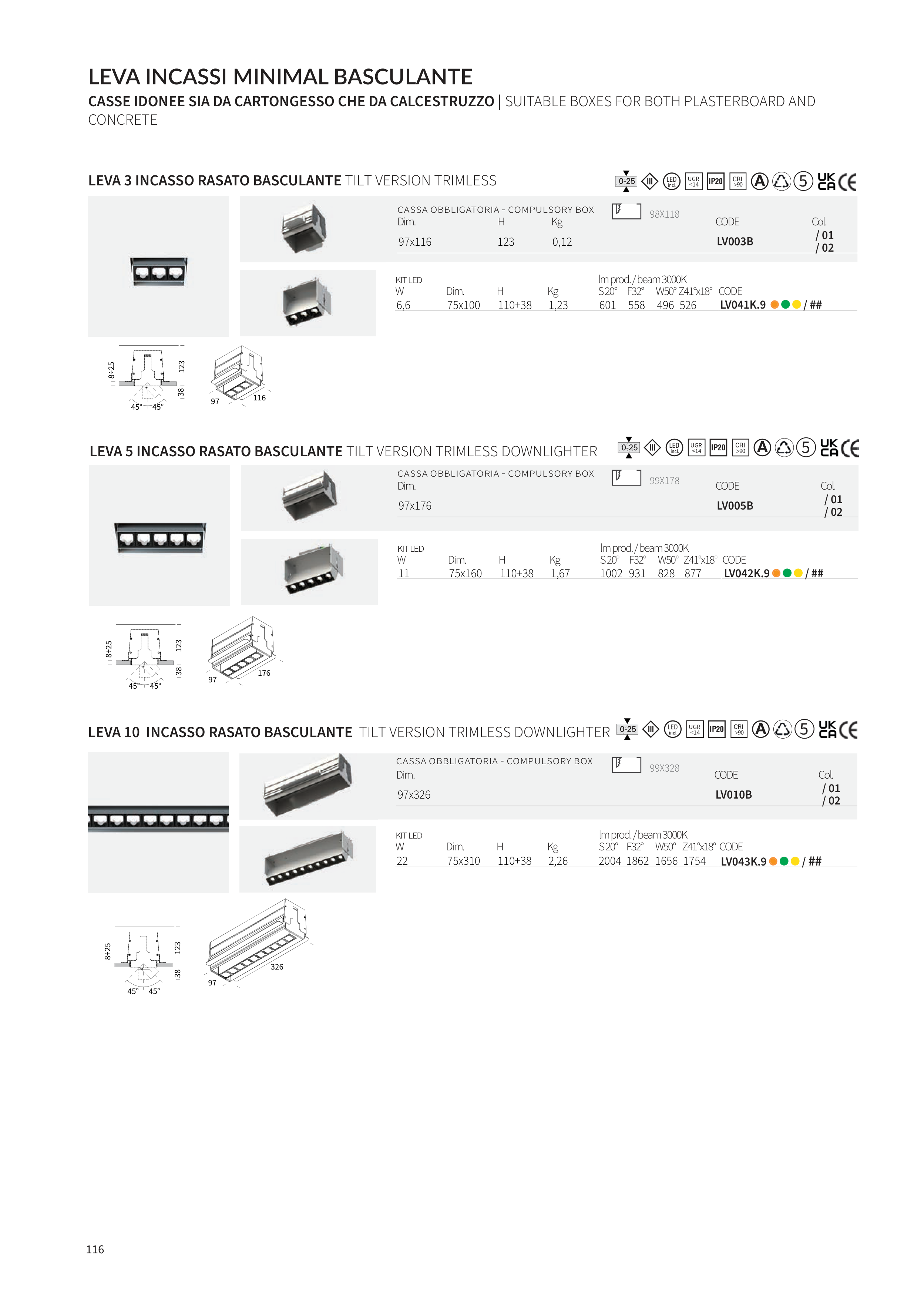 LEVA 3 INCASSO RASATO BASCULANTE TILT VERSION TRIMLESS