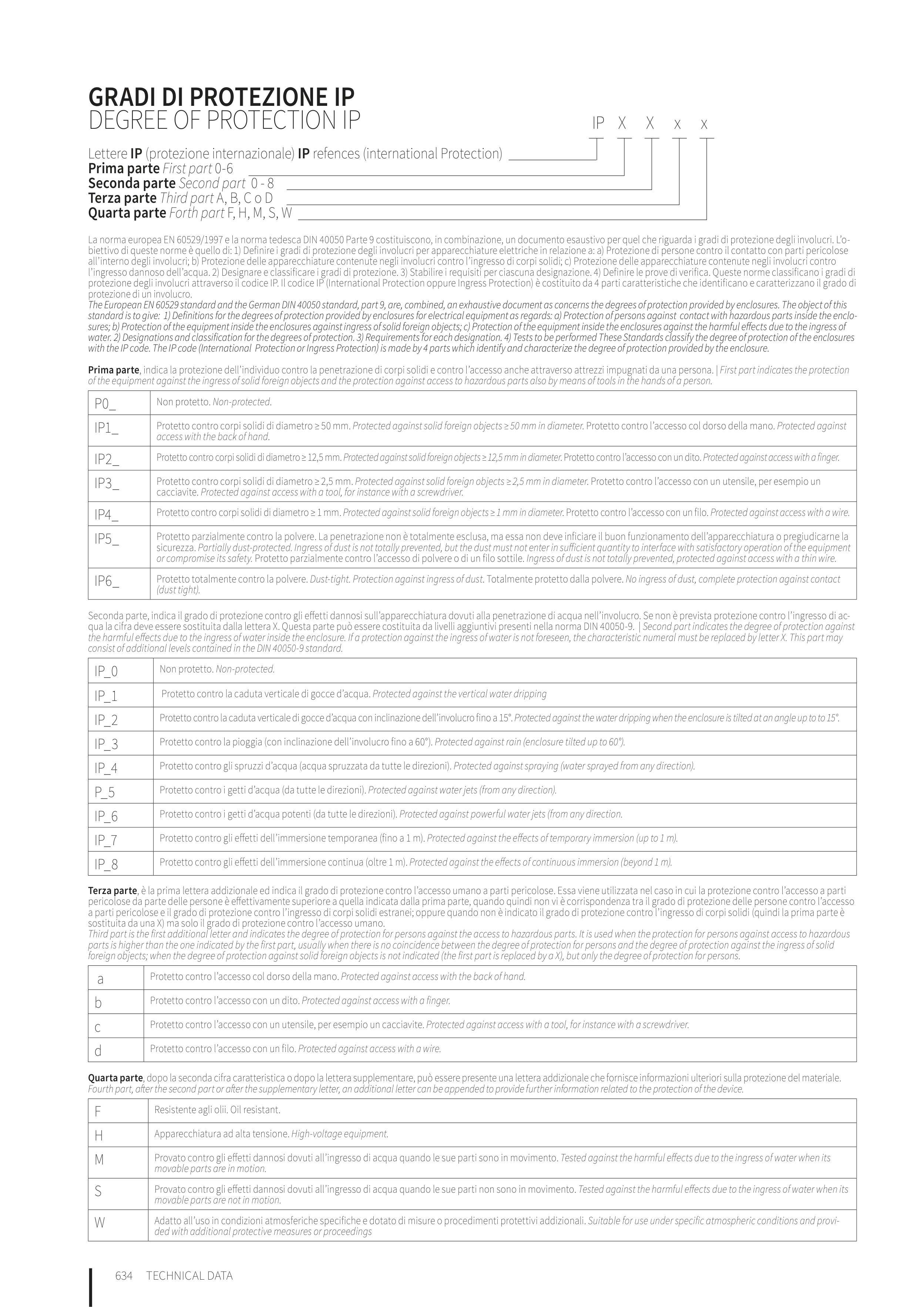 foreign objects; when the degree of protection against solid foreign objects is not indicated (the first part is replaced by a X), but only the degree of protection for persons�
