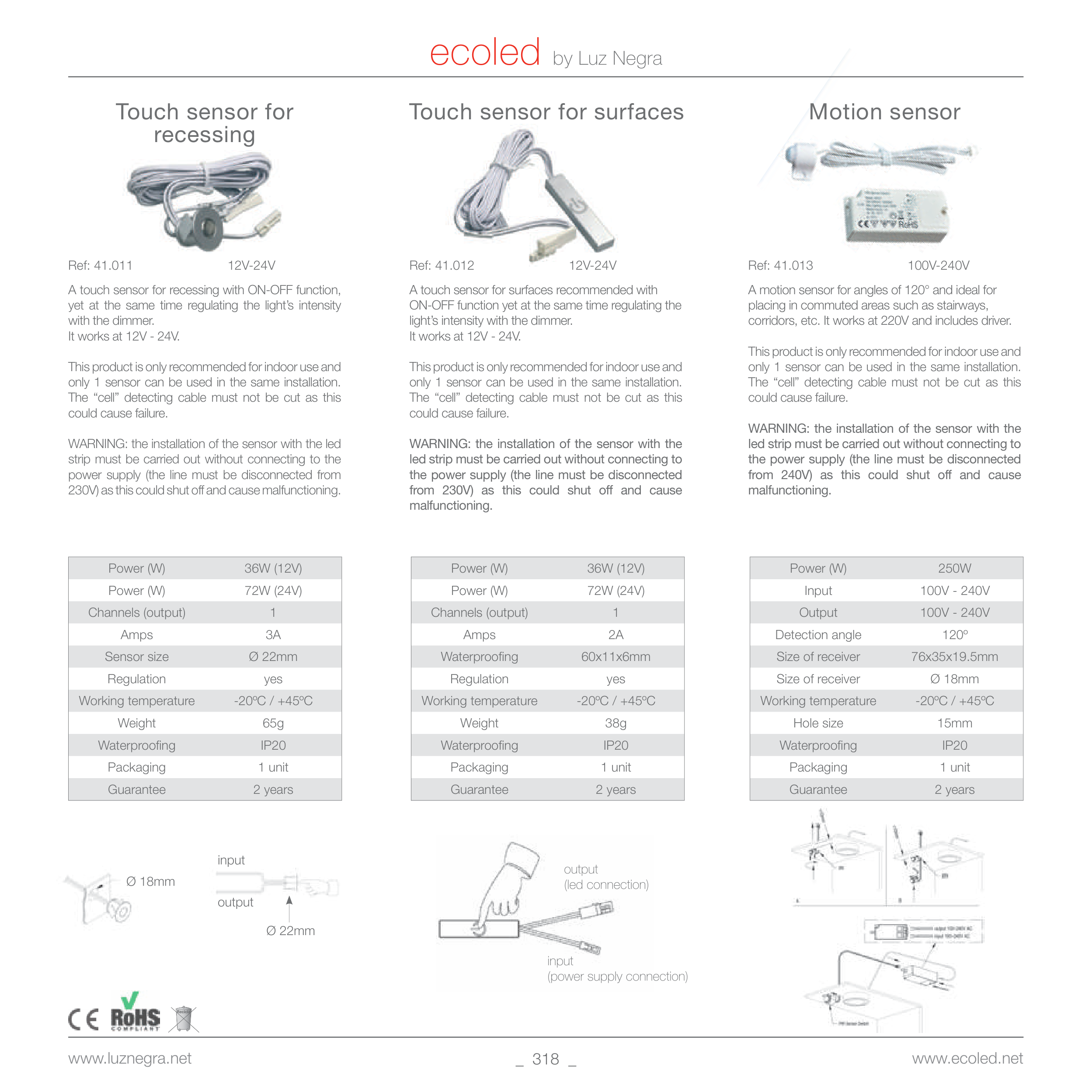 WARNING: the installation of the sensor with the led
