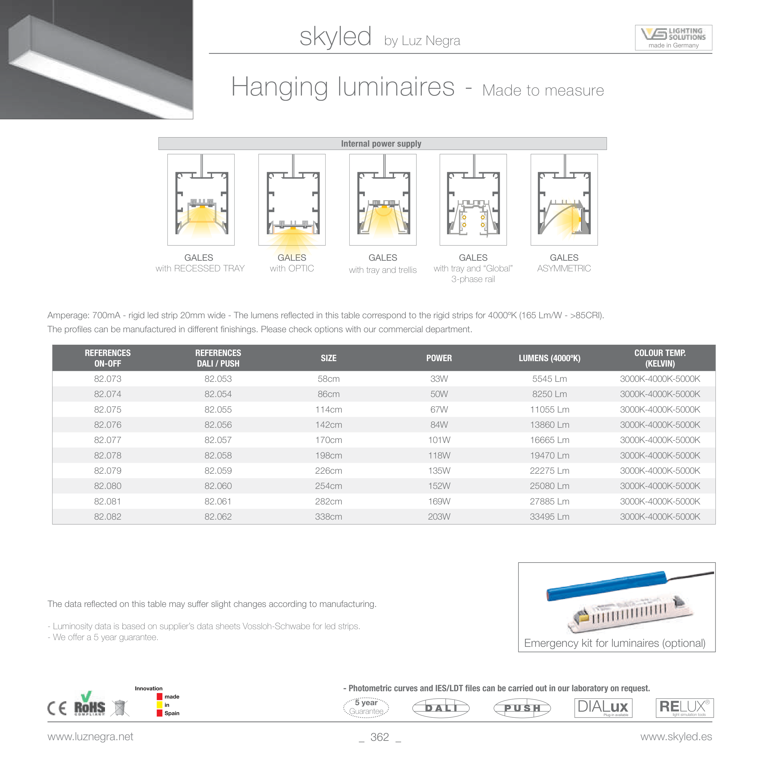 - Luminosity data is based on supplier’s data sheets Vossloh-Schwabe for led strips.