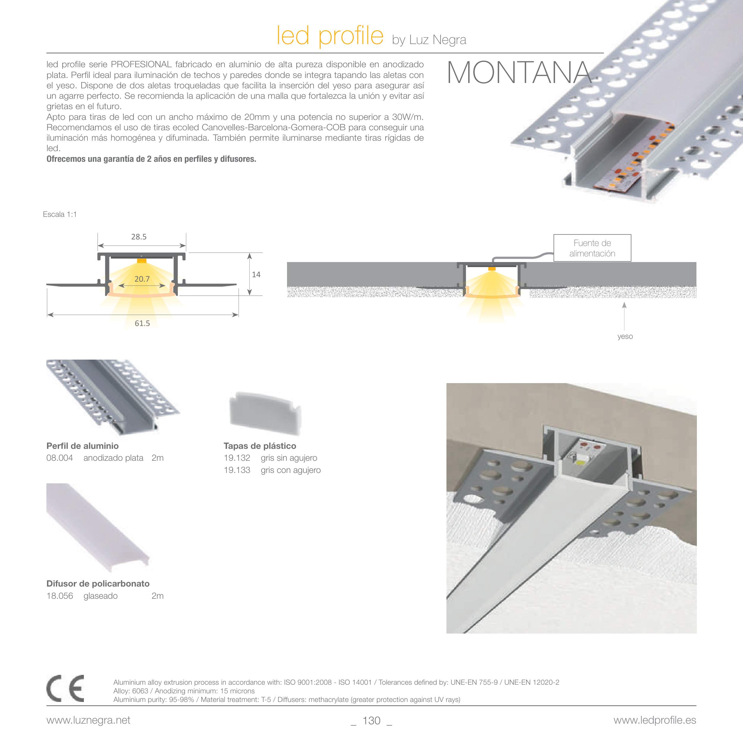 led profile serie PROFESIONAL fabricado en aluminio de alta pureza disponible en anodizado