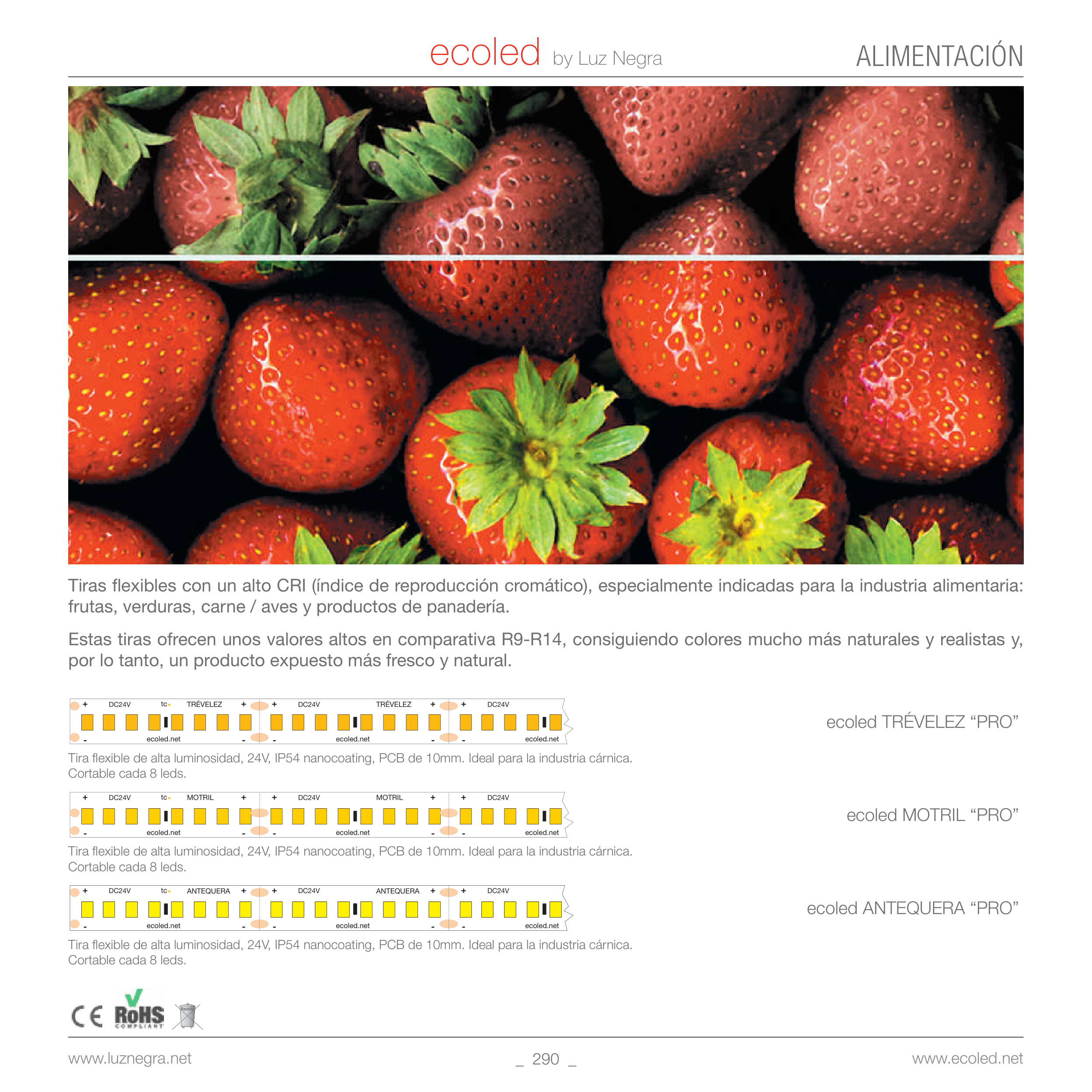 Tiras flexibles con un alto CRI (índice de reproducción cromático), especialmente indicadas para la industria alimentaria: