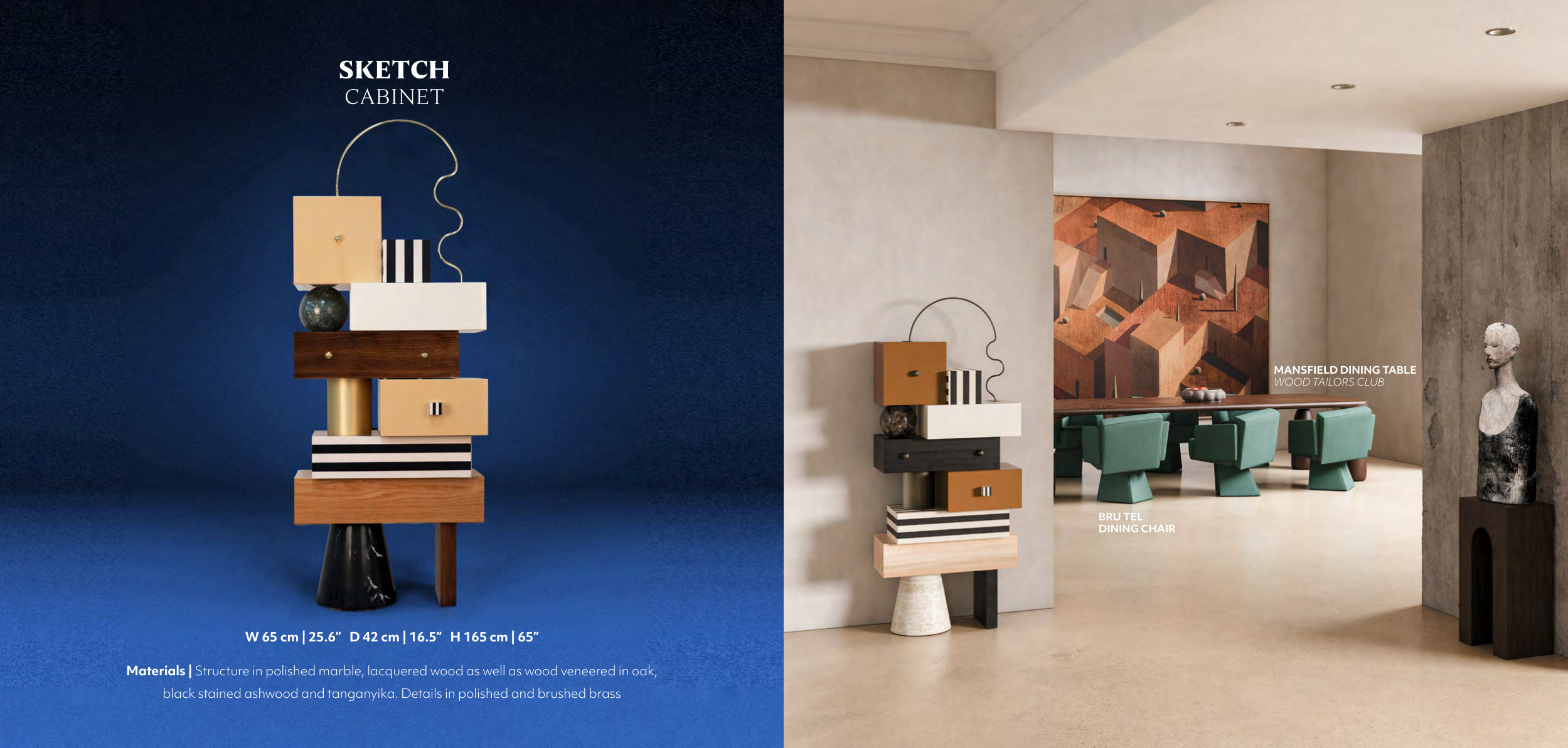Materials | Structure in polished marble, lacquered wood as well as wood veneered in oak,
