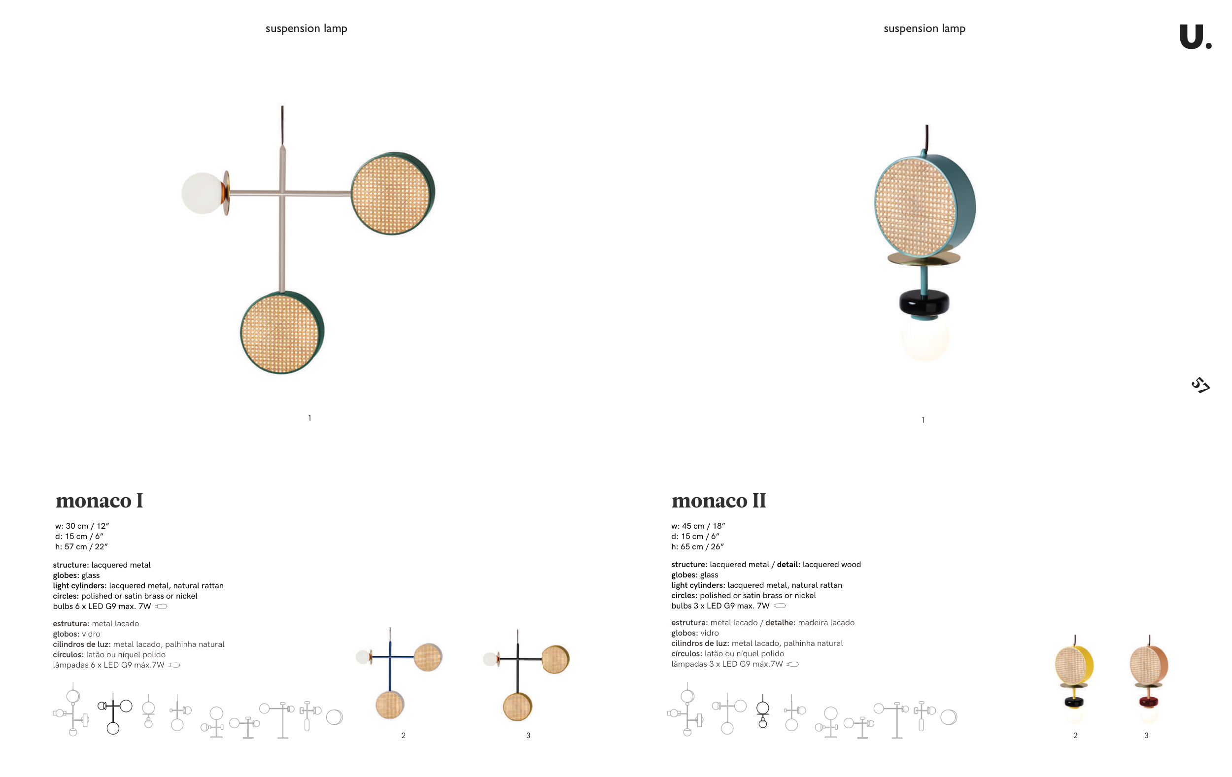 cilindros de luz: metal lacado, palhinha natural