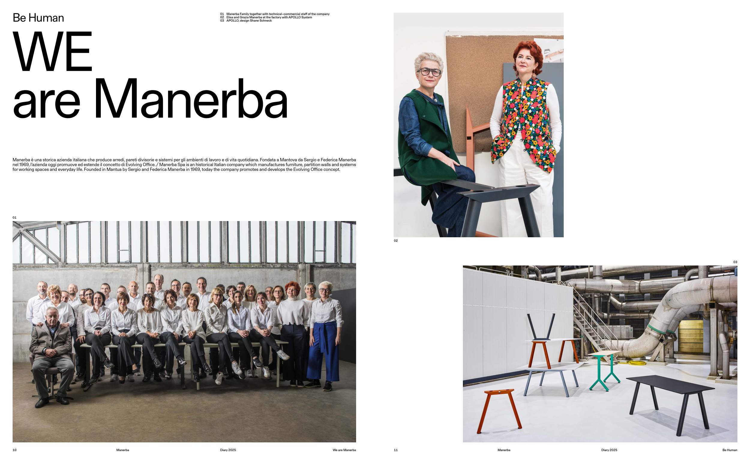 for working spaces and everyday life. Founded in Mantua by Sergio and Federica Manerba in 1969, today the company promotes and develops the Evolving Office concept.