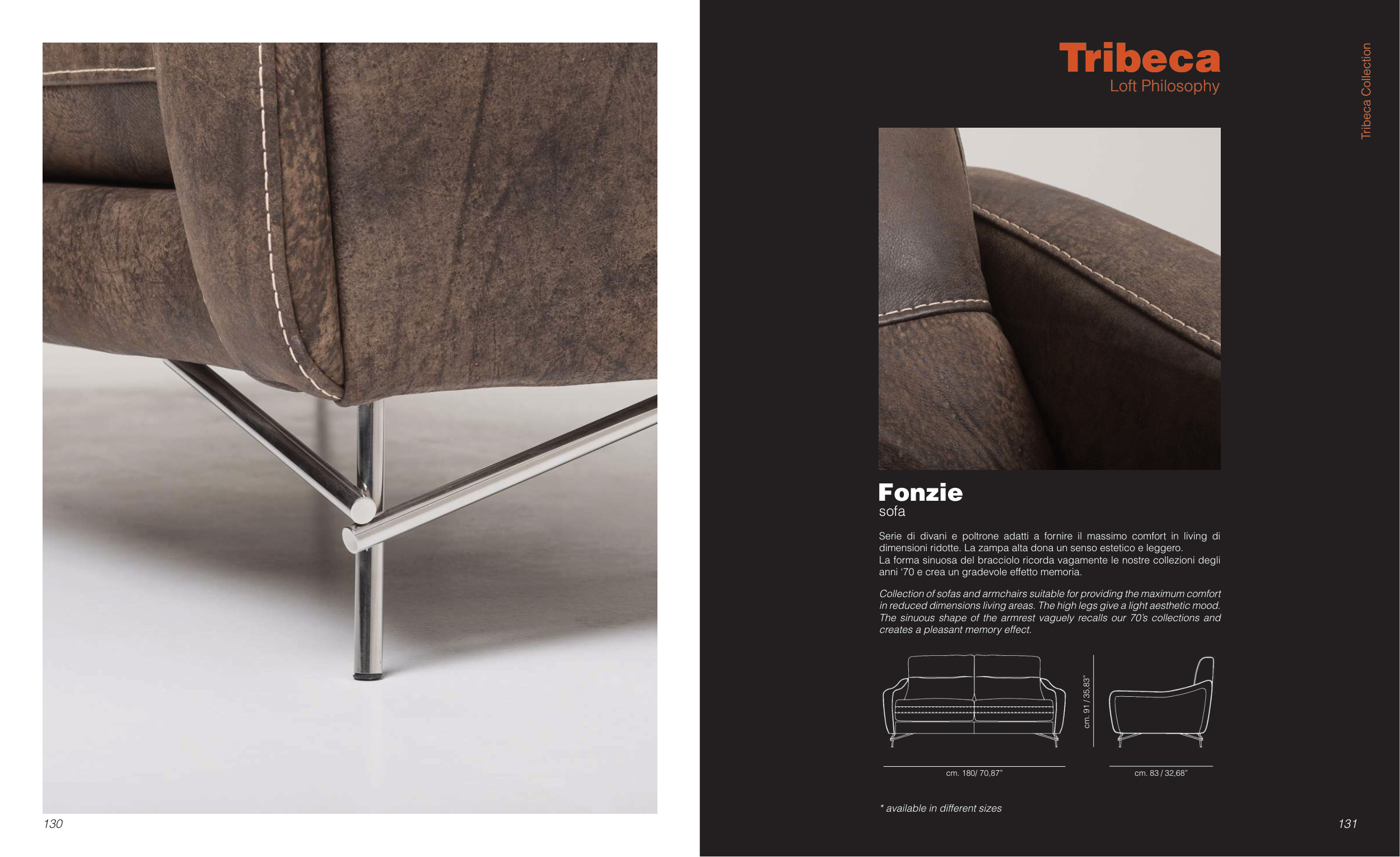 The sinuous shape of the armrest vaguely recalls our 70’s collections and