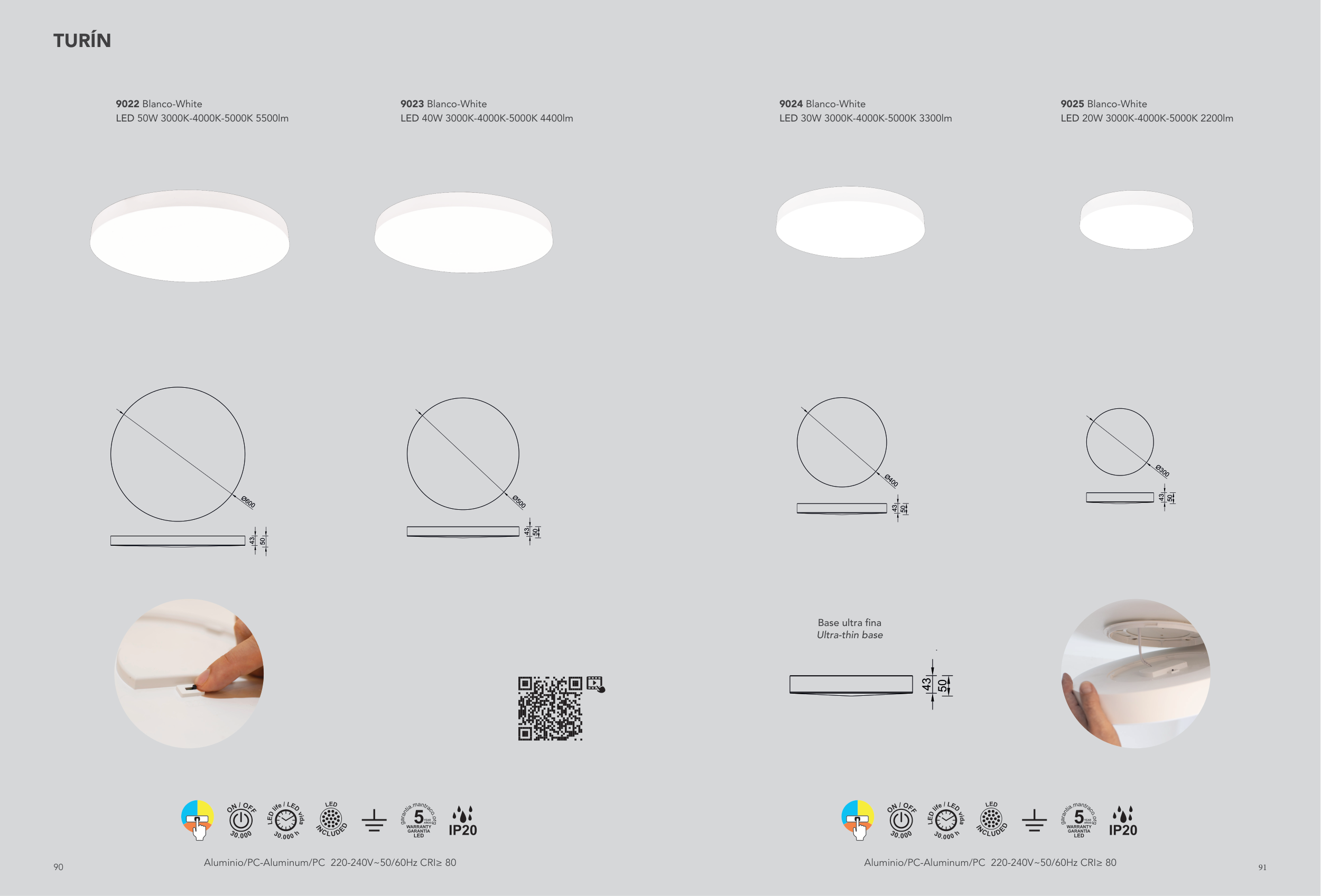 Aluminio/PC-Aluminum/PC 220-240V~50/60Hz CRI≥ 80