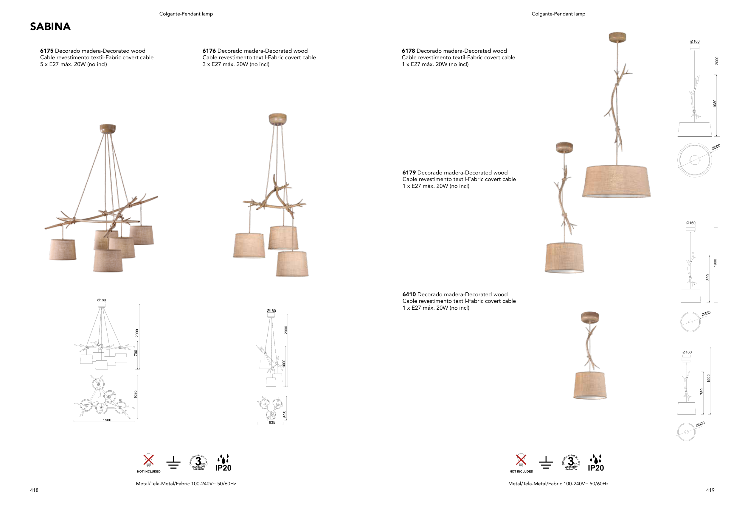 5 x E27 máx. 20W (no incl)