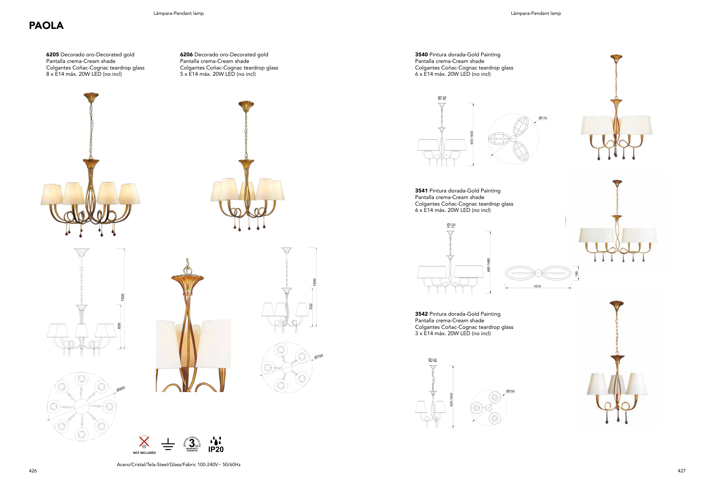 6 x E14 máx. 20W LED (no incl)