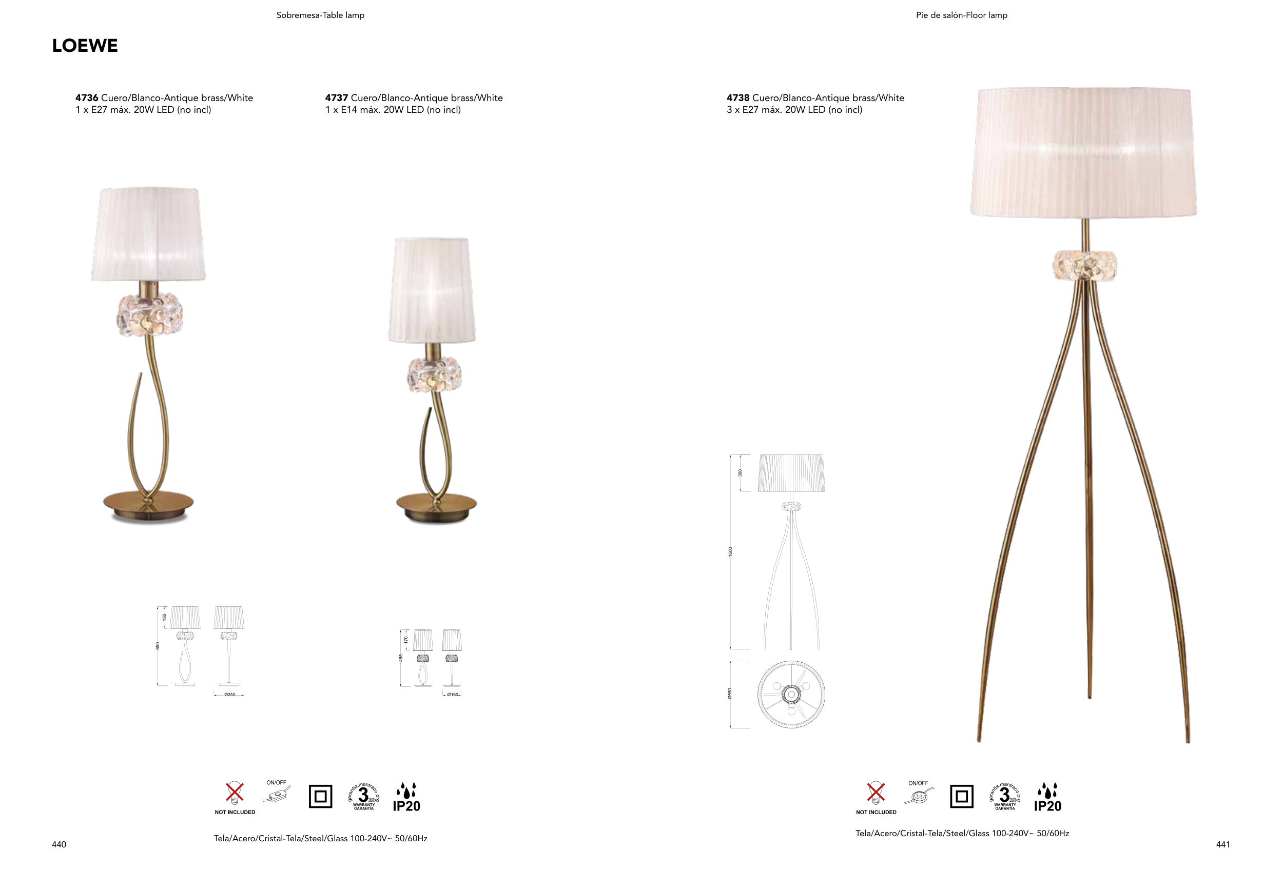 3 x E27 máx. 20W LED (no incl)