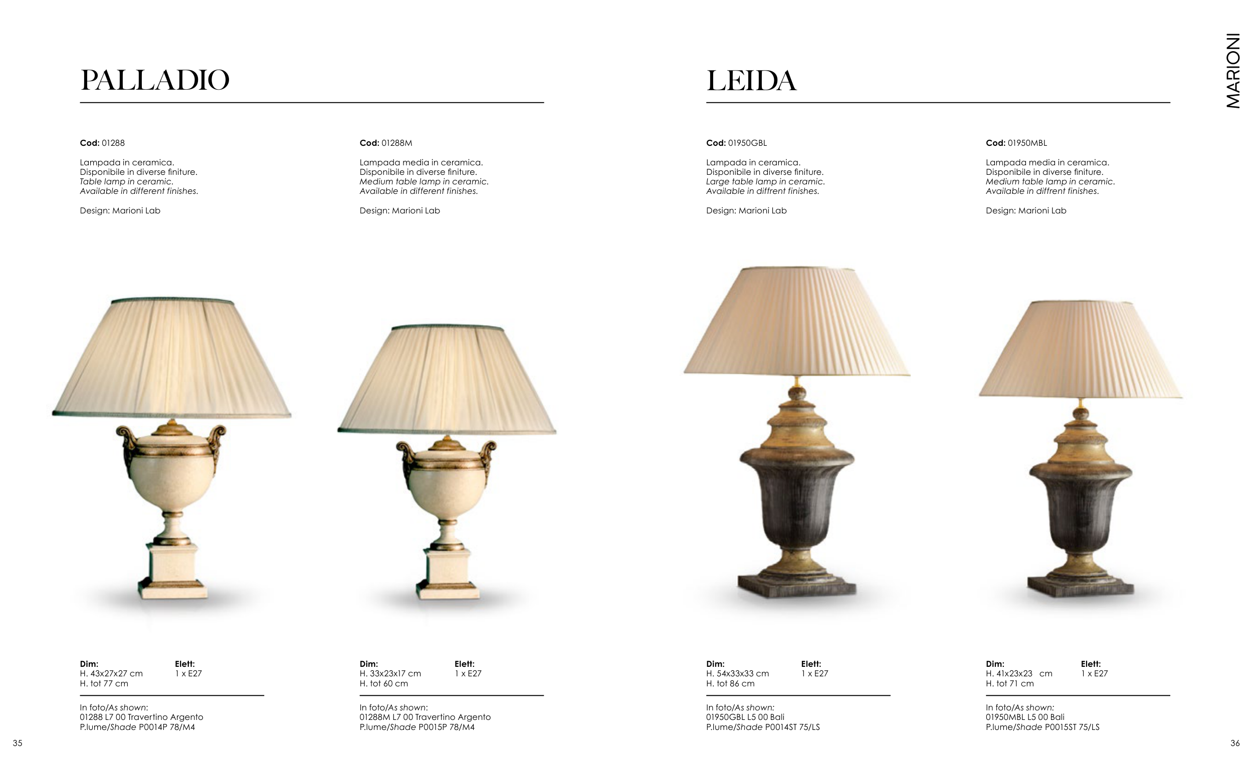 Disponibile in diverse finiture.