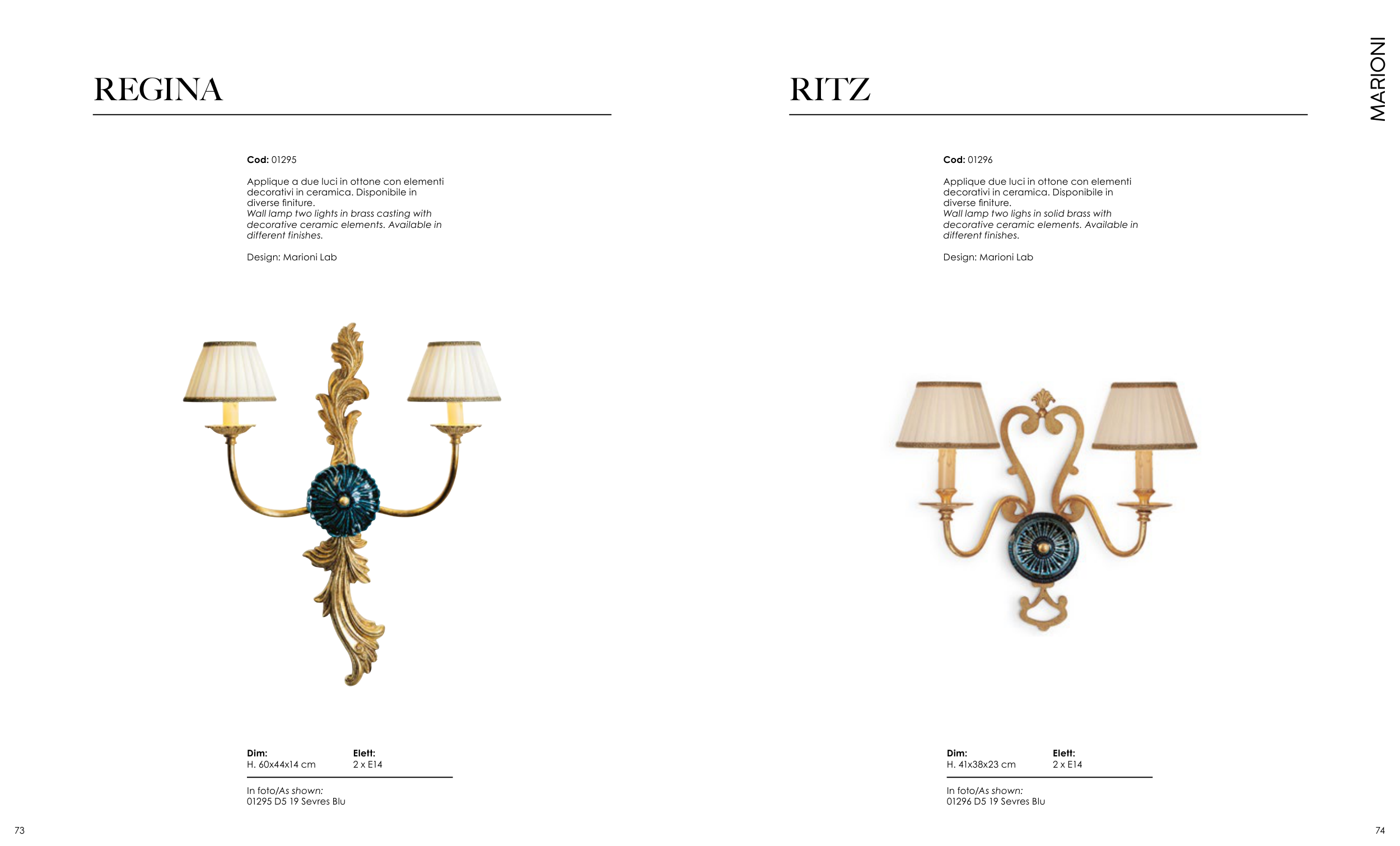Applique due luci in ottone con elementi