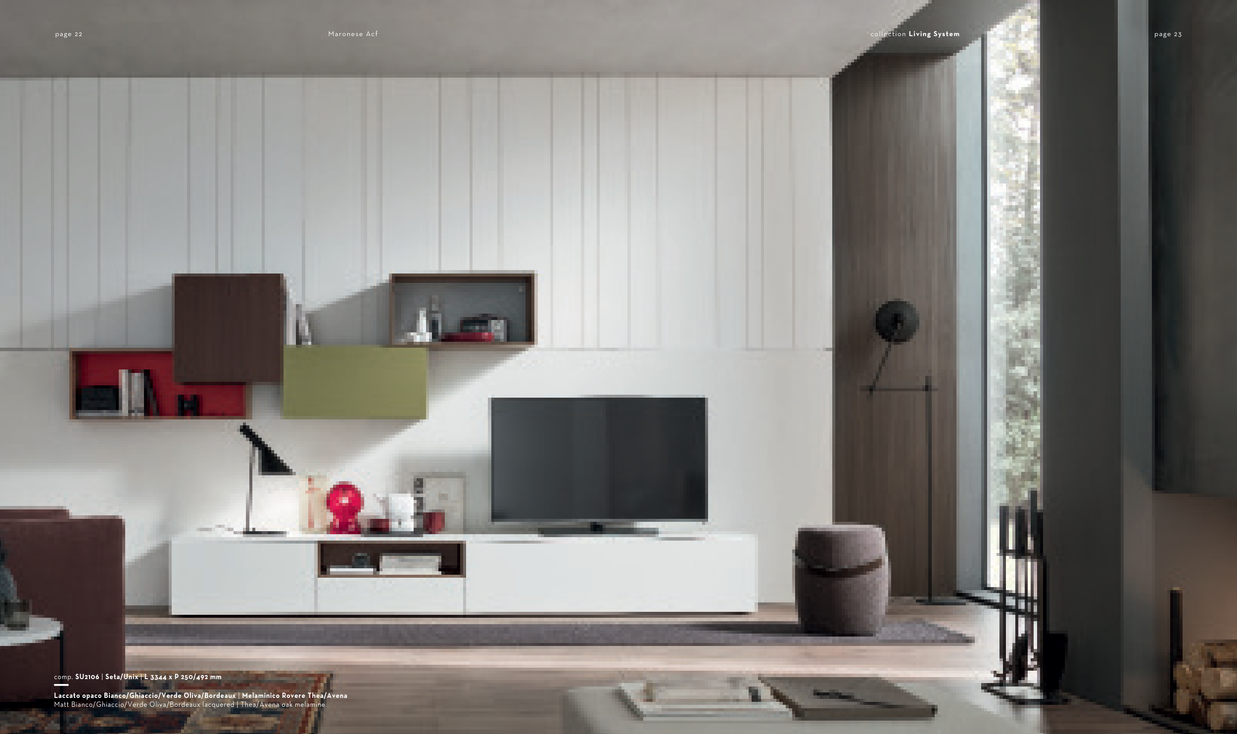 Matt Bianco/Ghiaccio/Verde Oliva/Bordeaux lacquered | Thea/Avena oak melamine