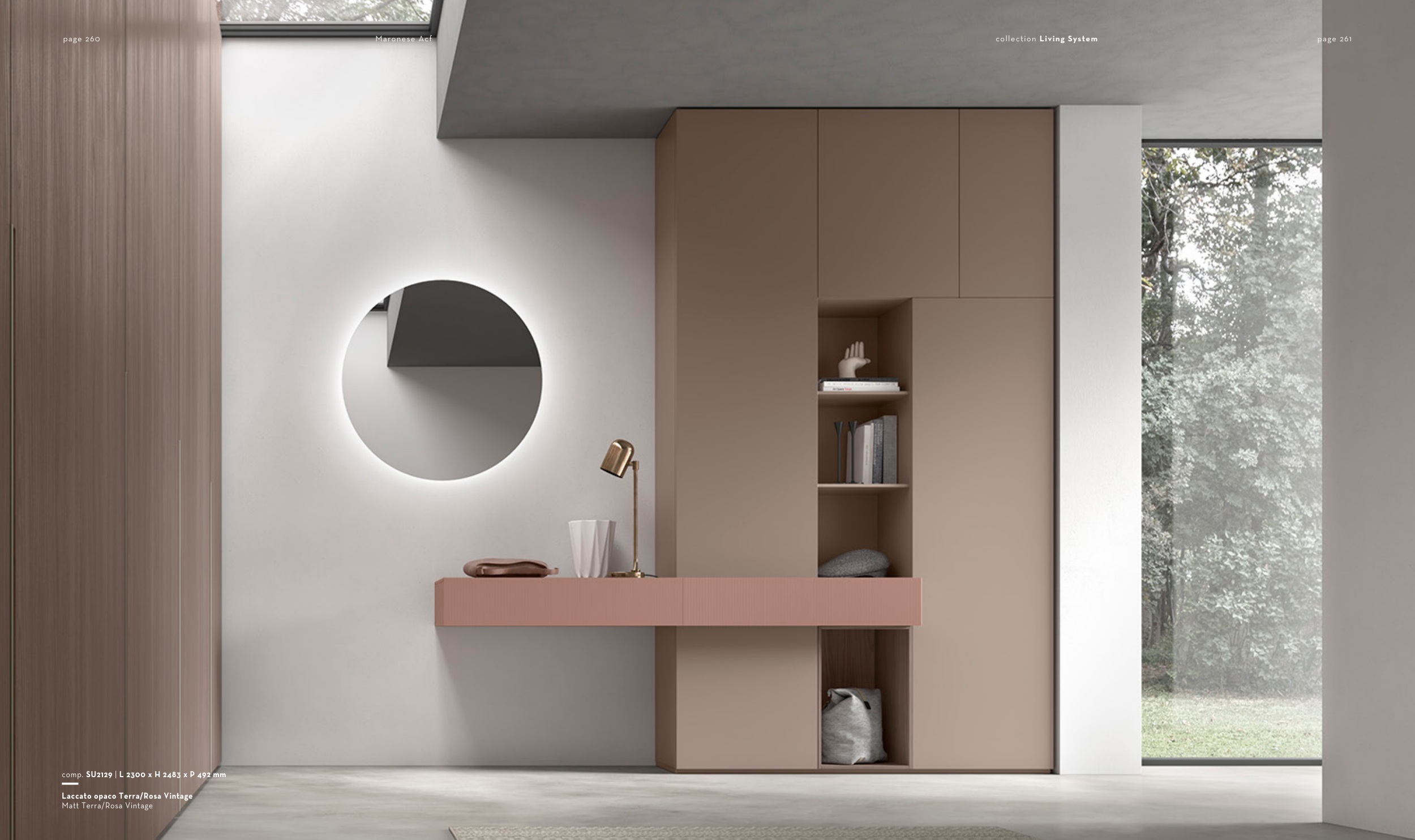 Laccato opaco Terra/Rosa Vintage Matt Terra/Rosa Vintage comp. SU2129 | L 2300 x H 2483 x P 492 mm page 260 page 261 Maronese Acf collection Living System
