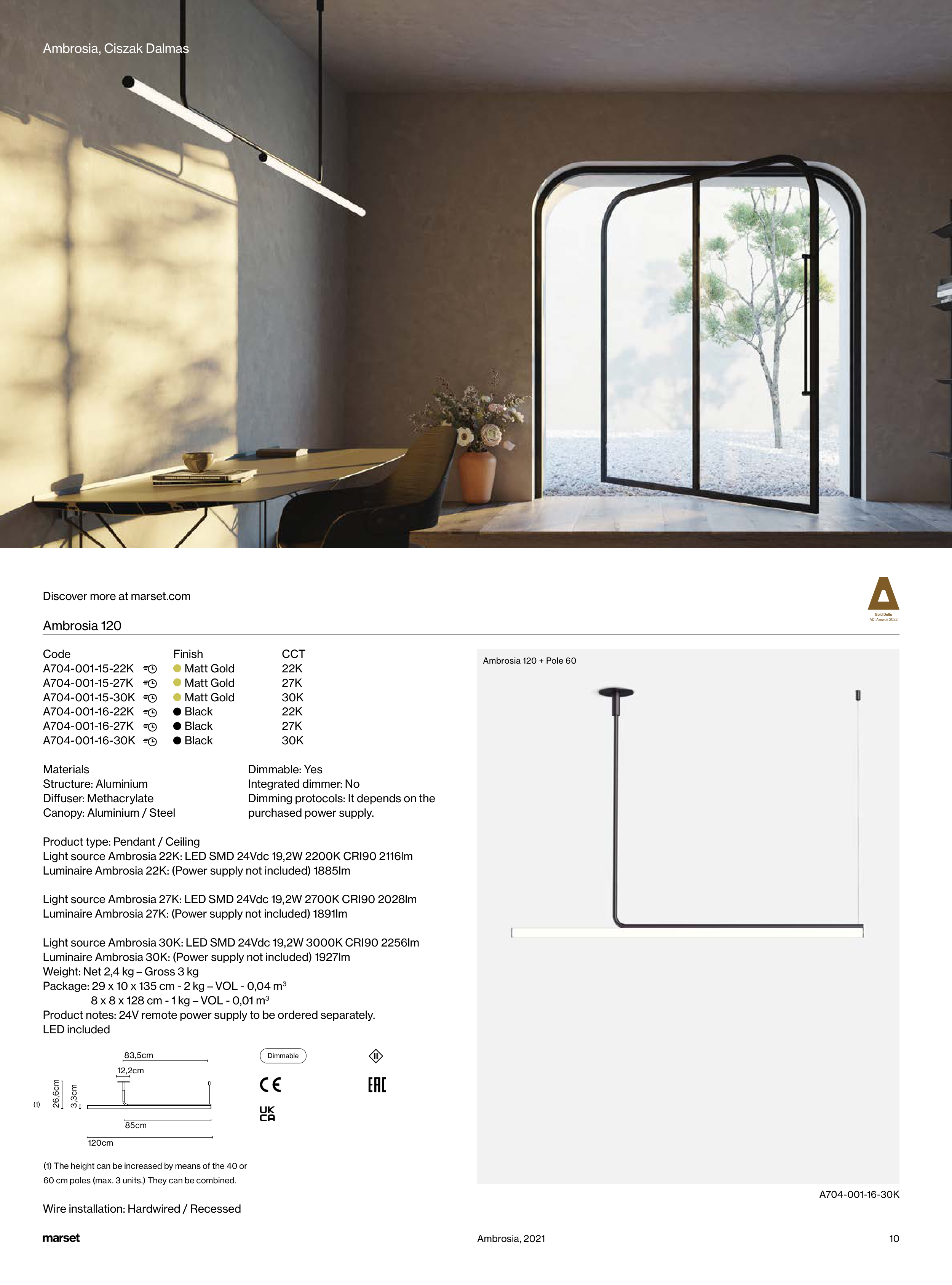 Luminaire Ambrosia 27K: (Power supply not included) 1891lm