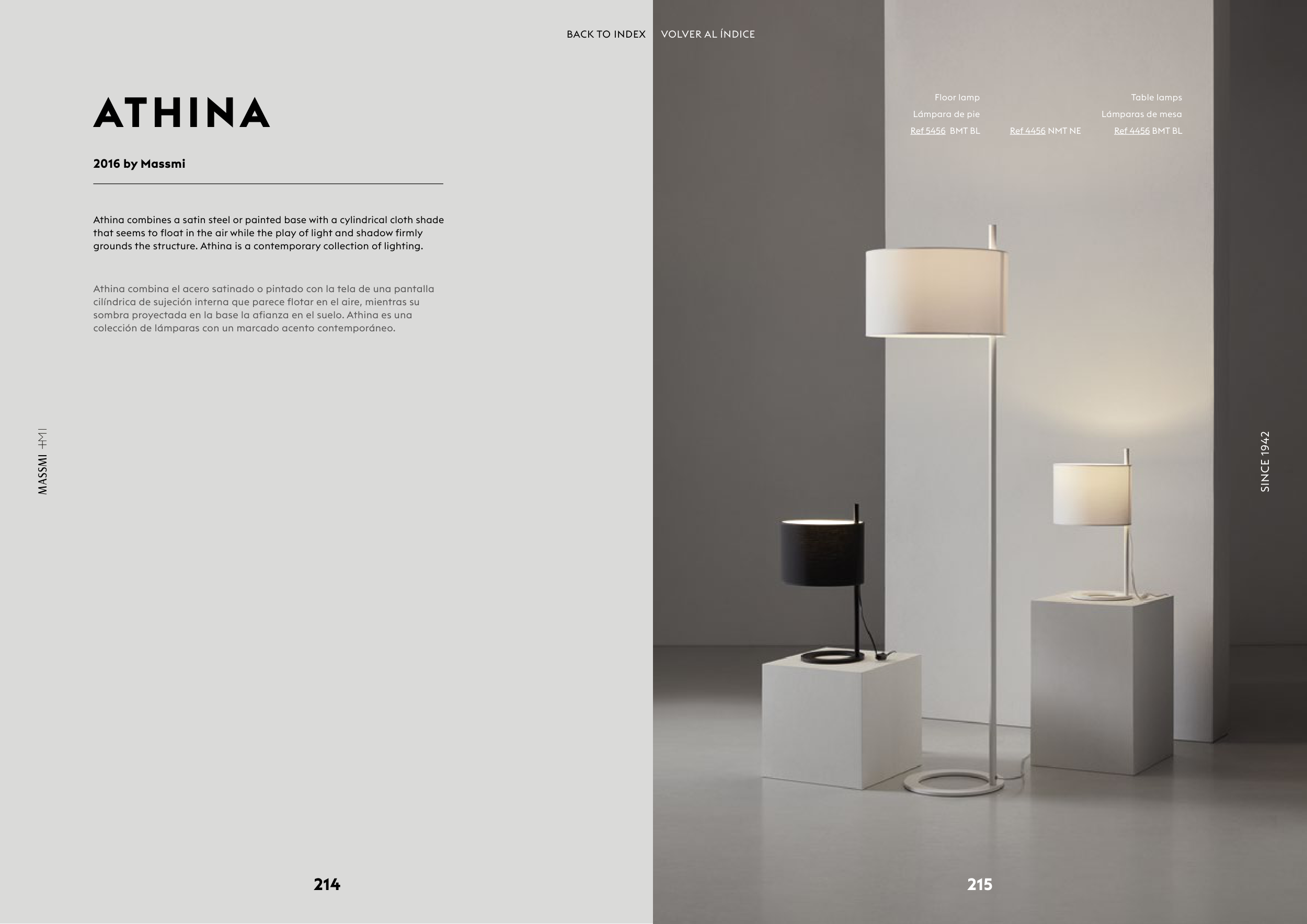 Athina combines a satin steel or painted base with a cylindrical cloth shade