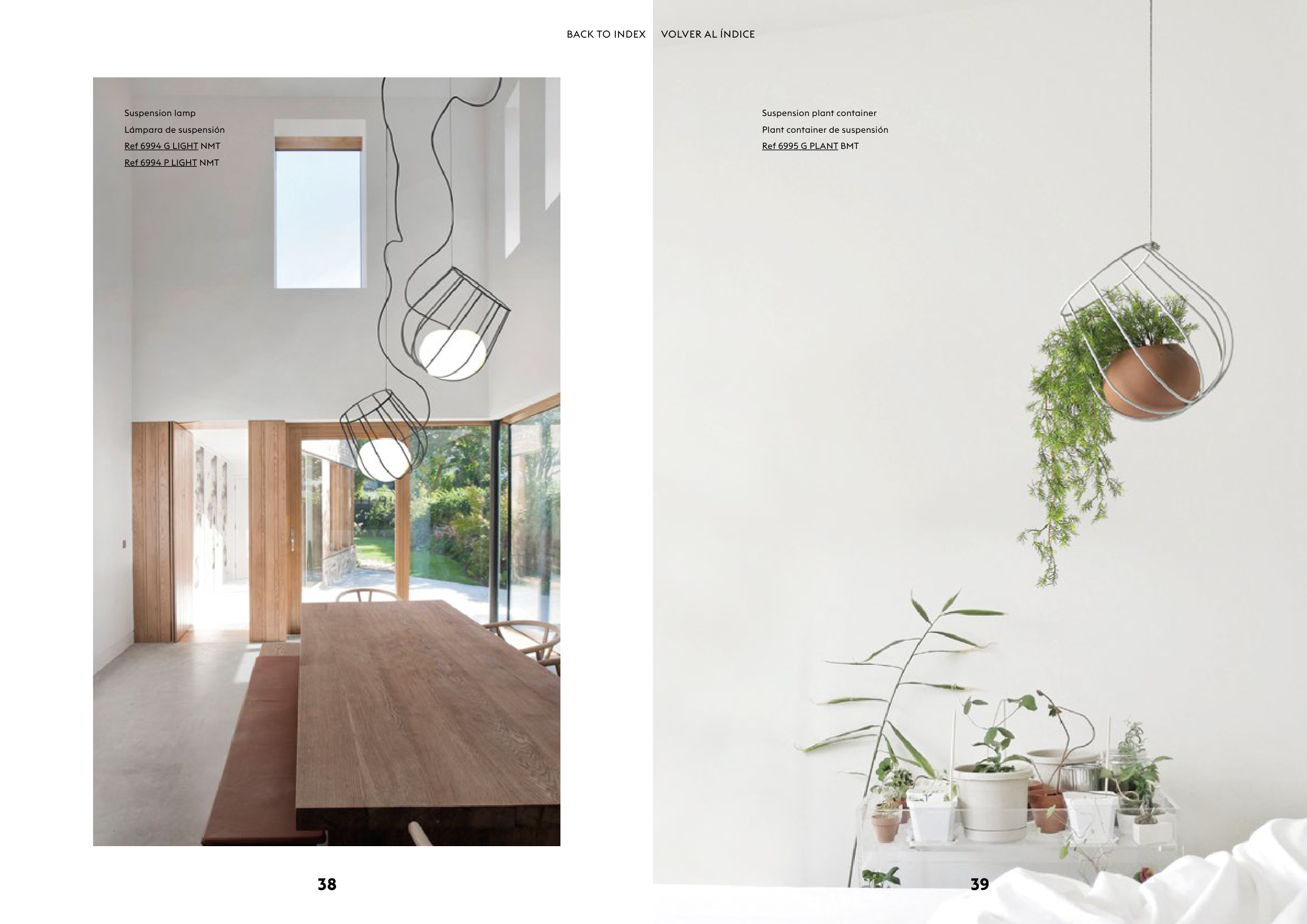 38 39 Lámpara de suspensión Suspension lamp Ref 6994 G LIGHT NMT Ref 6994 P LIGHT NMT Plant container de suspensión Suspension plant container Ref 6995 G PLANT BMT BACK TO INDEX VOLVER AL ÍNDICE