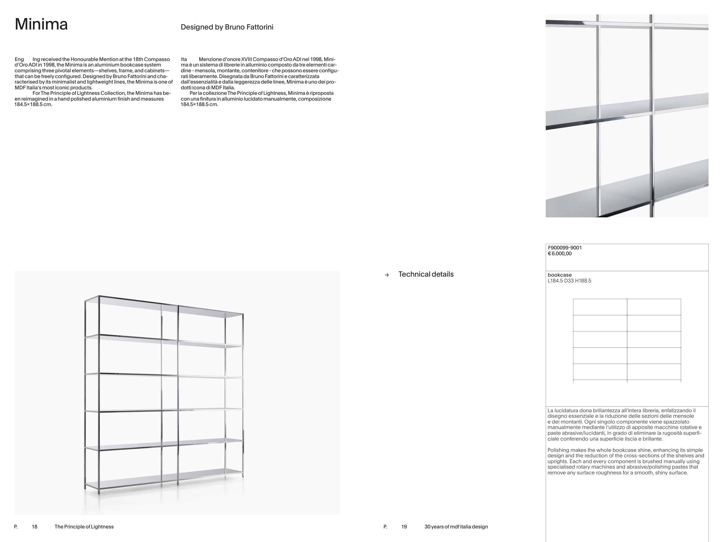 d’Oro ADI in 1998, the Minima is an aluminium bookcase system