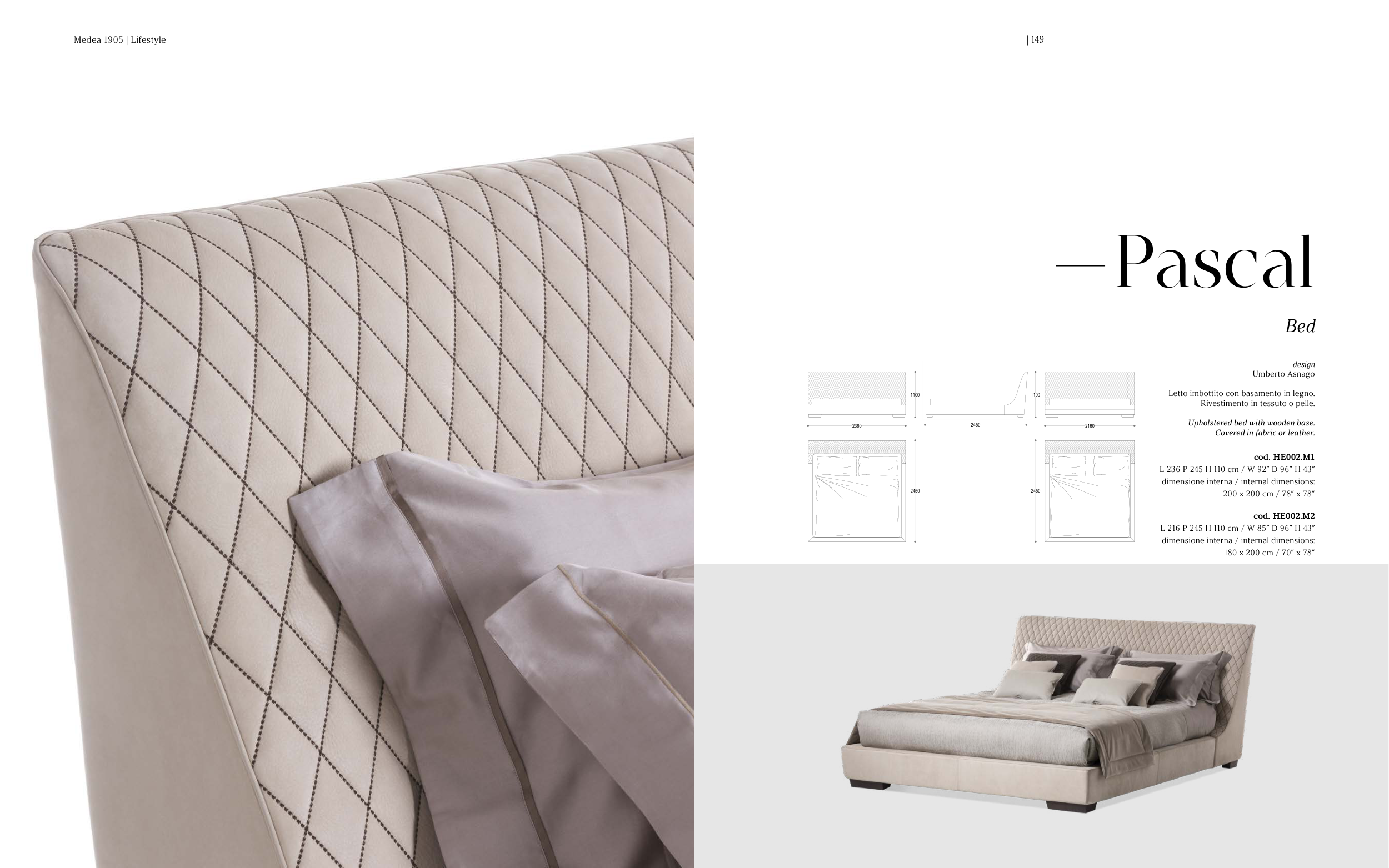 Letto imbottito con basamento in legno.