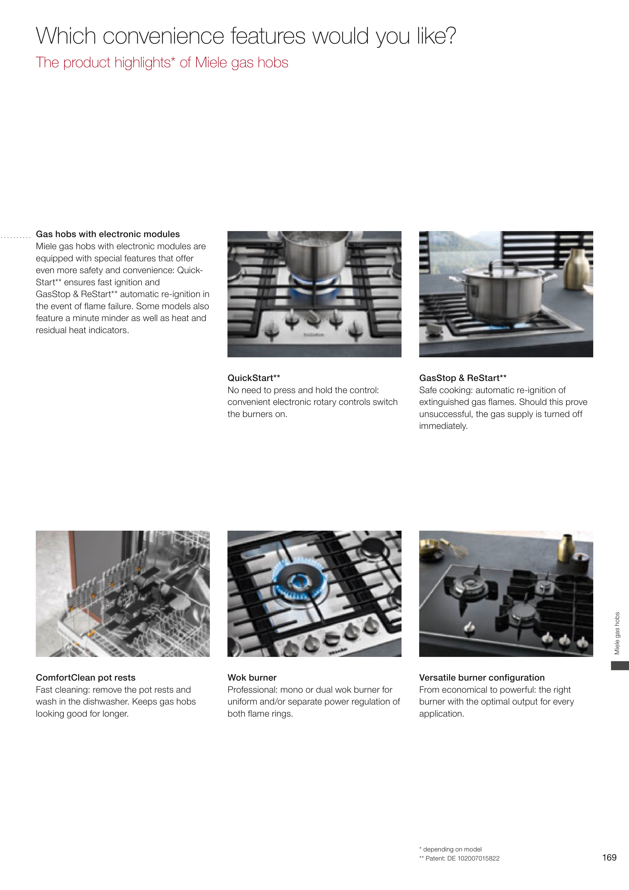 The product highlights* of Miele gas hobs
