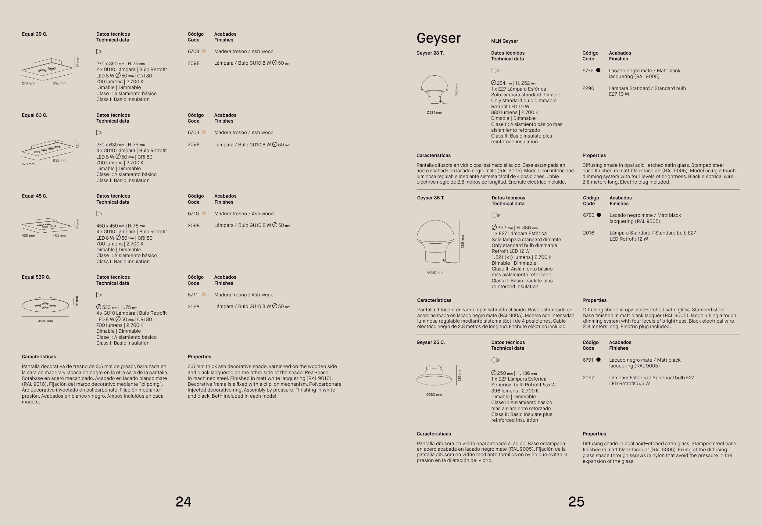 Pantalla difusora en vidrio opal satinado al ácido. Base estampada en