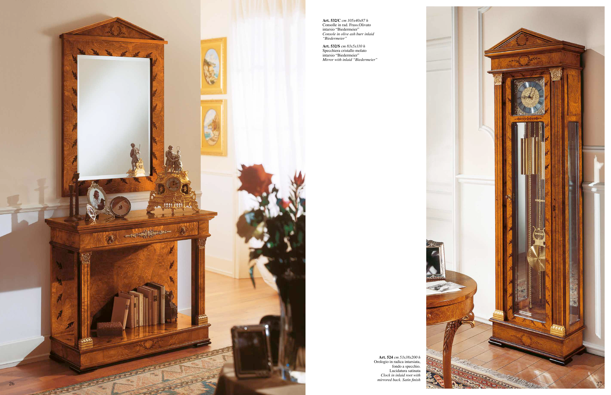 Console in olive ash burr inlaid