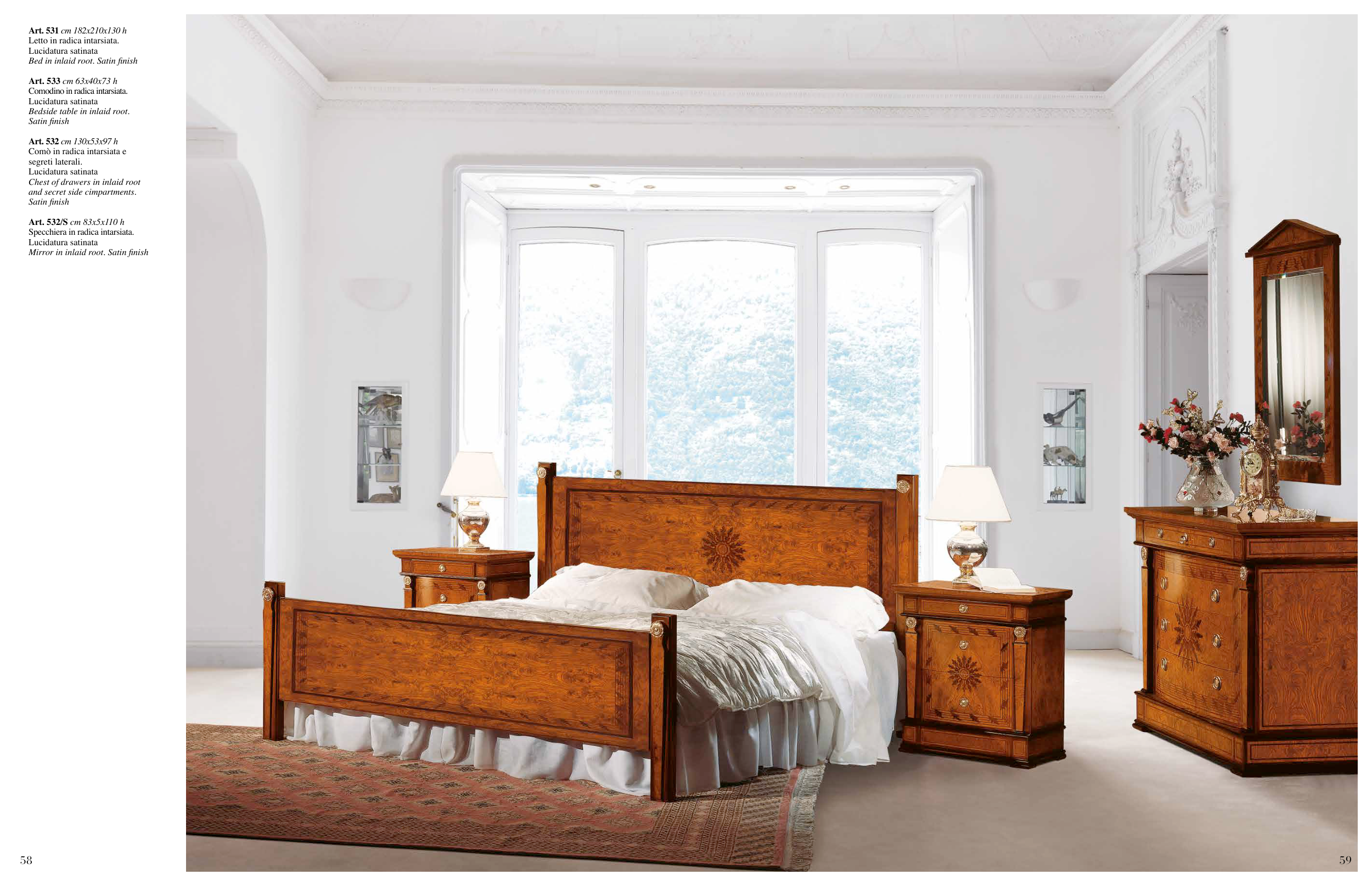 Bed in inlaid root. Satin finish