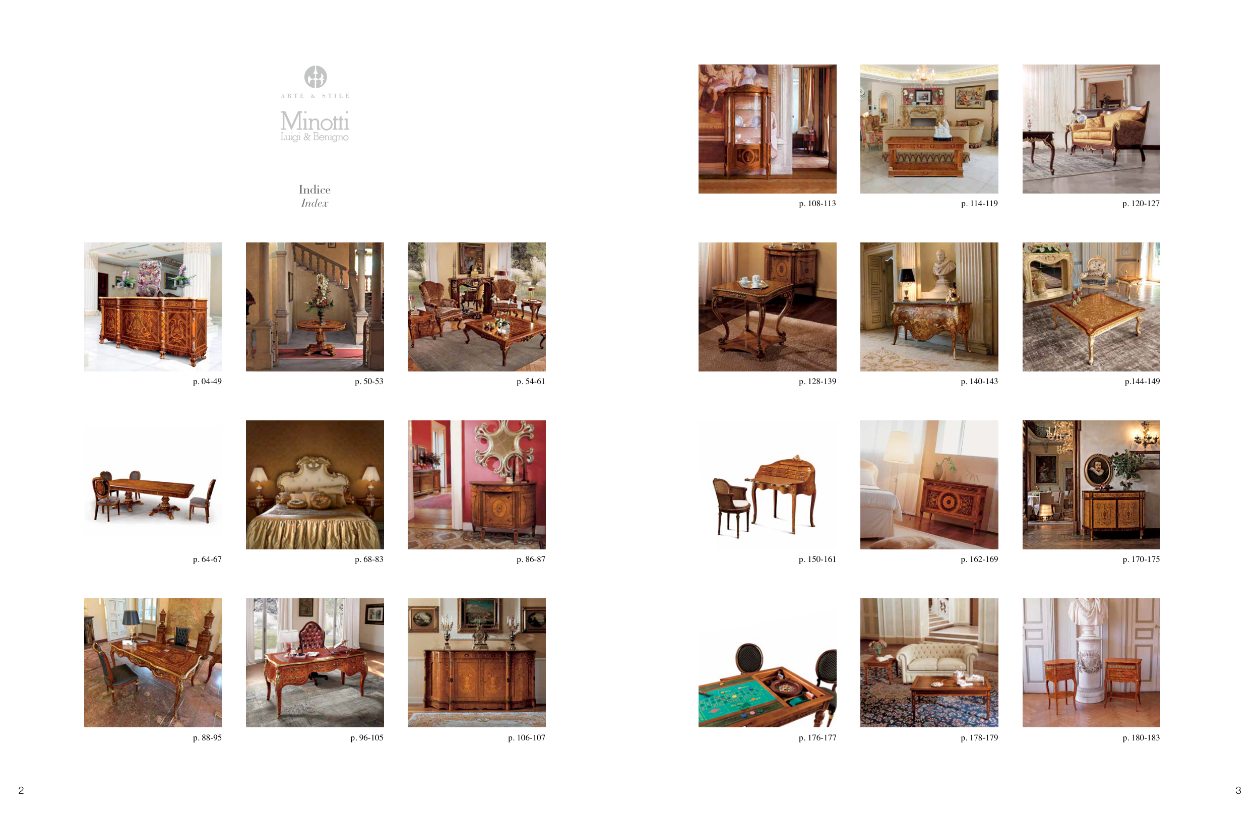 p. 50-53 p. 54-61 p. 04-49 p. 114-119 p. 120-127 p. 108-113 p. 68-83 p. 86-87 p. 64-67 p. 140-143 p.144-149 p. 128-139 p. 96-105 p. 106-107 p. 88-95 p. 178-179 p. 180-183 p. 176-177 p. 162-169 p. 170-175 p. 150-161 Indice Index 2 3
