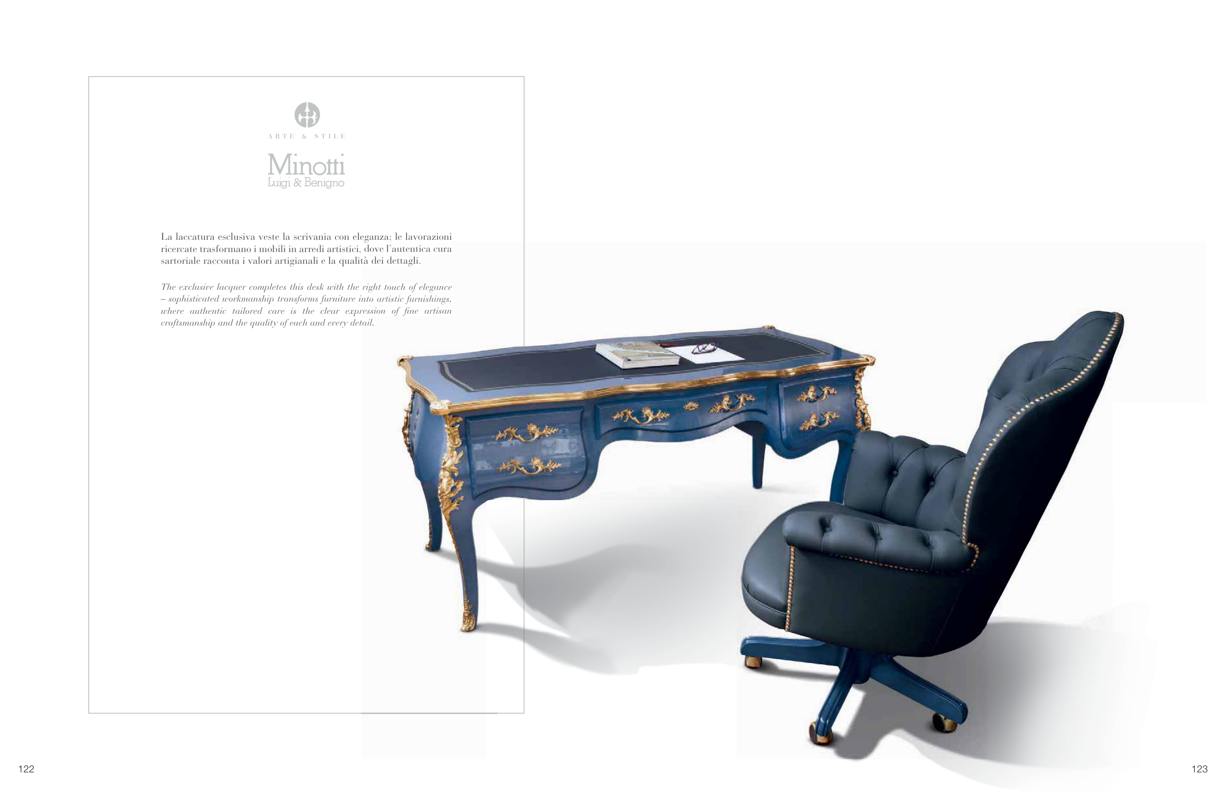 La laccatura esclusiva veste la scrivania con eleganza; le lavorazioni