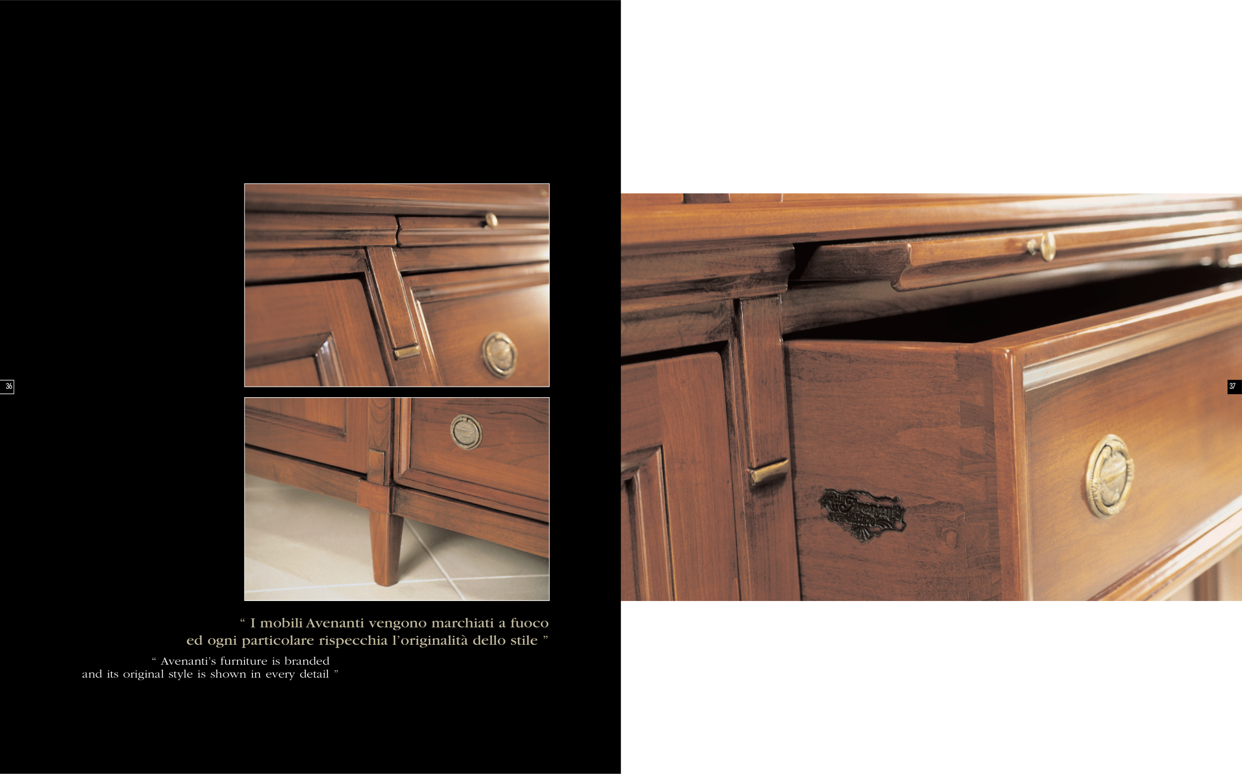 “ I mobili Avenanti vengono marchiati a fuoco ed ogni particolare rispecchia l’originalità dello stile ” “ Avenanti’s furniture is branded and its original style is shown in every detail ” 37 36