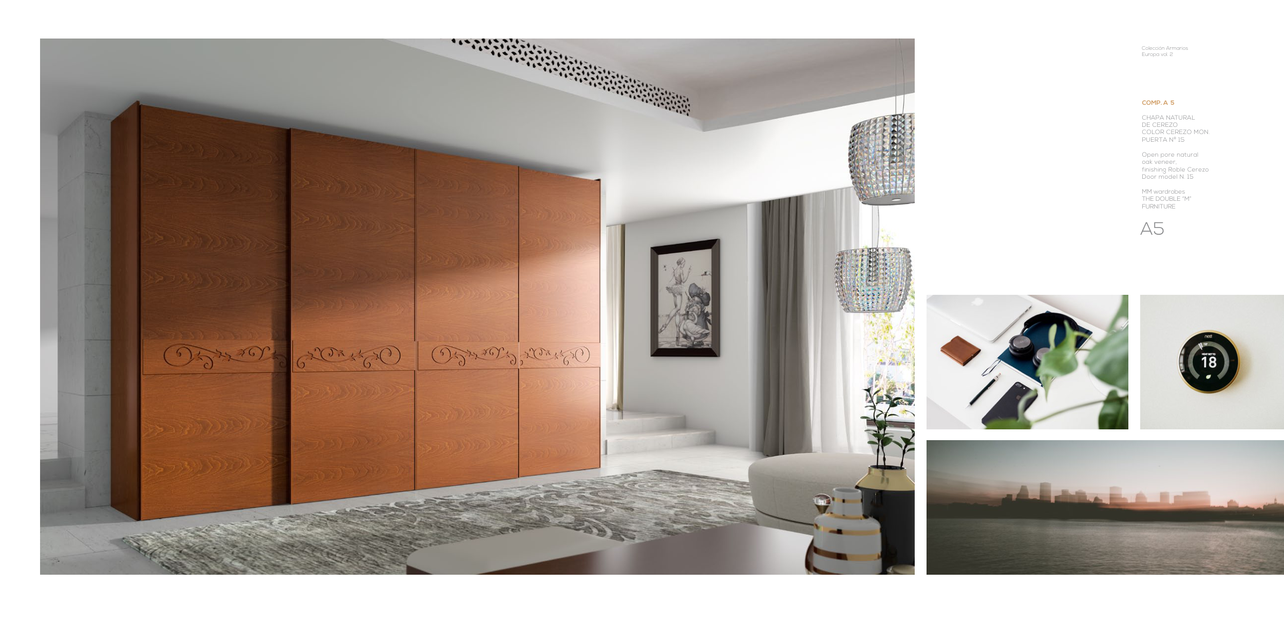 A5 COMP. A 5 CHAPA NATURAL DE CEREZO COLOR CEREZO MON. PUERTA Nº 15 Open pore natural oak veneer, finishing Roble Cerezo Door model N. 15 MM wardrobes THE DOUBLE “M” FURNITURE Colección Armarios Europa vol. 2