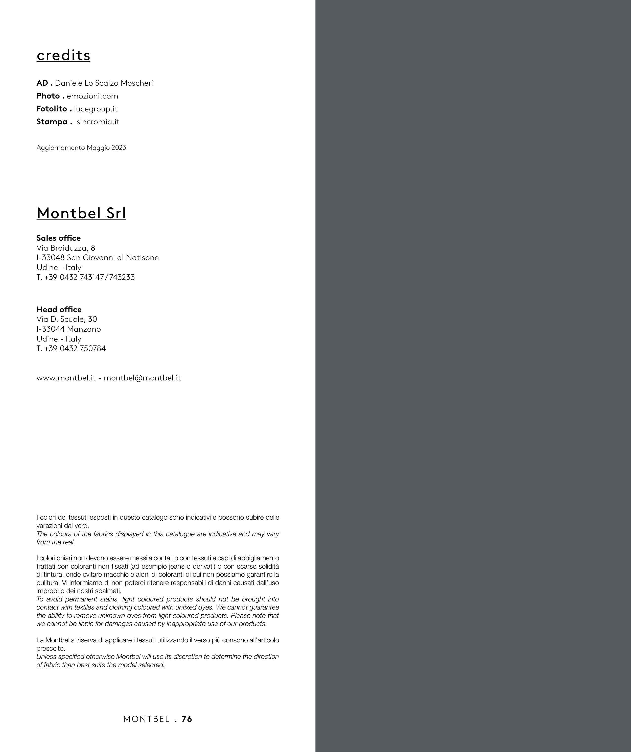 La Montbel si riserva di applicare i tessuti utilizzando il verso più consono all'articolo