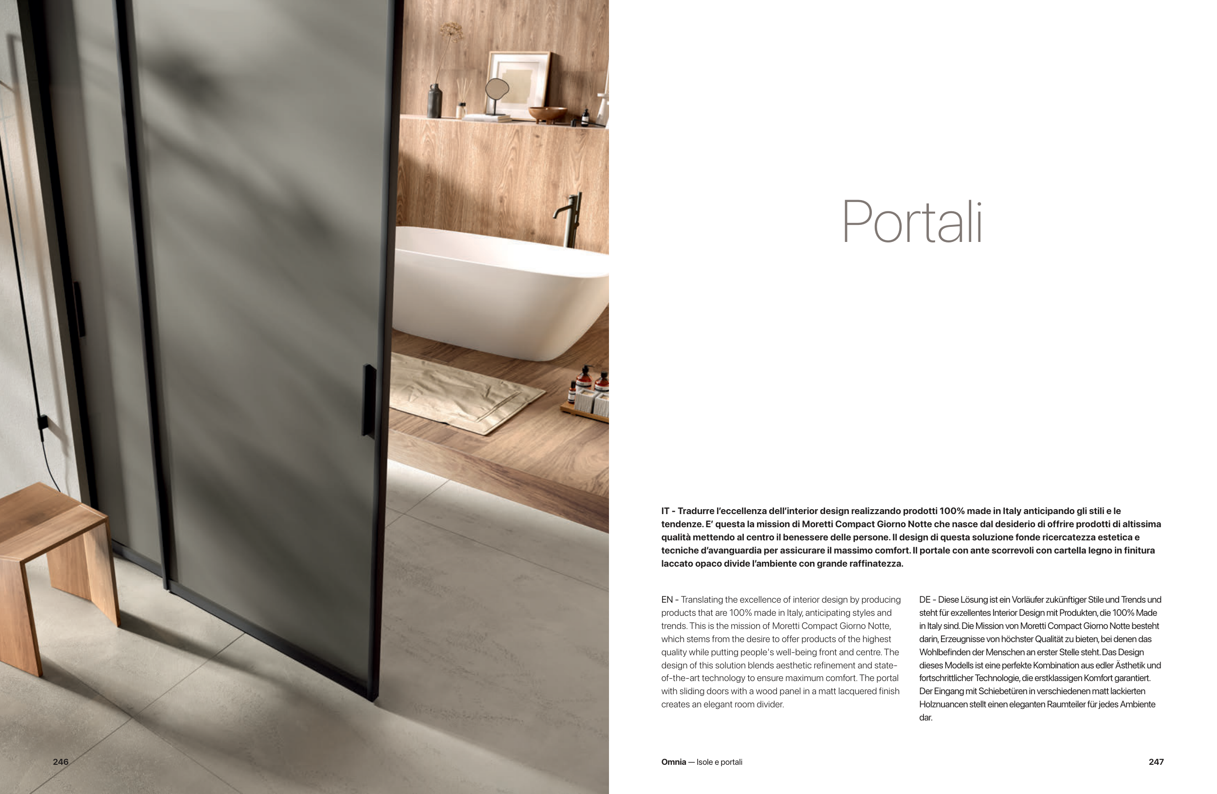 tecniche d’avanguardia per assicurare il massimo comfort. Il portale con ante scorrevoli con cartella legno in finitura